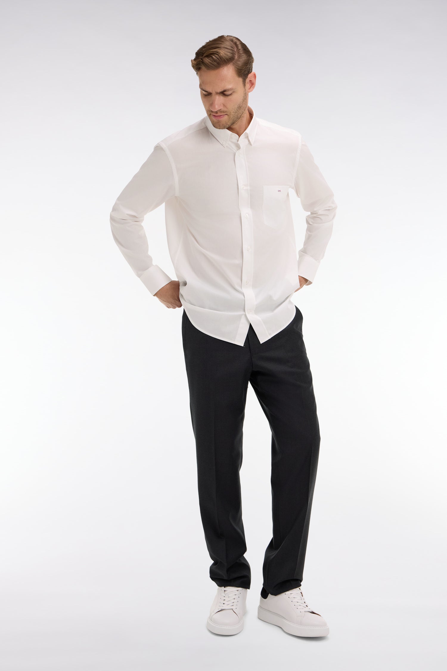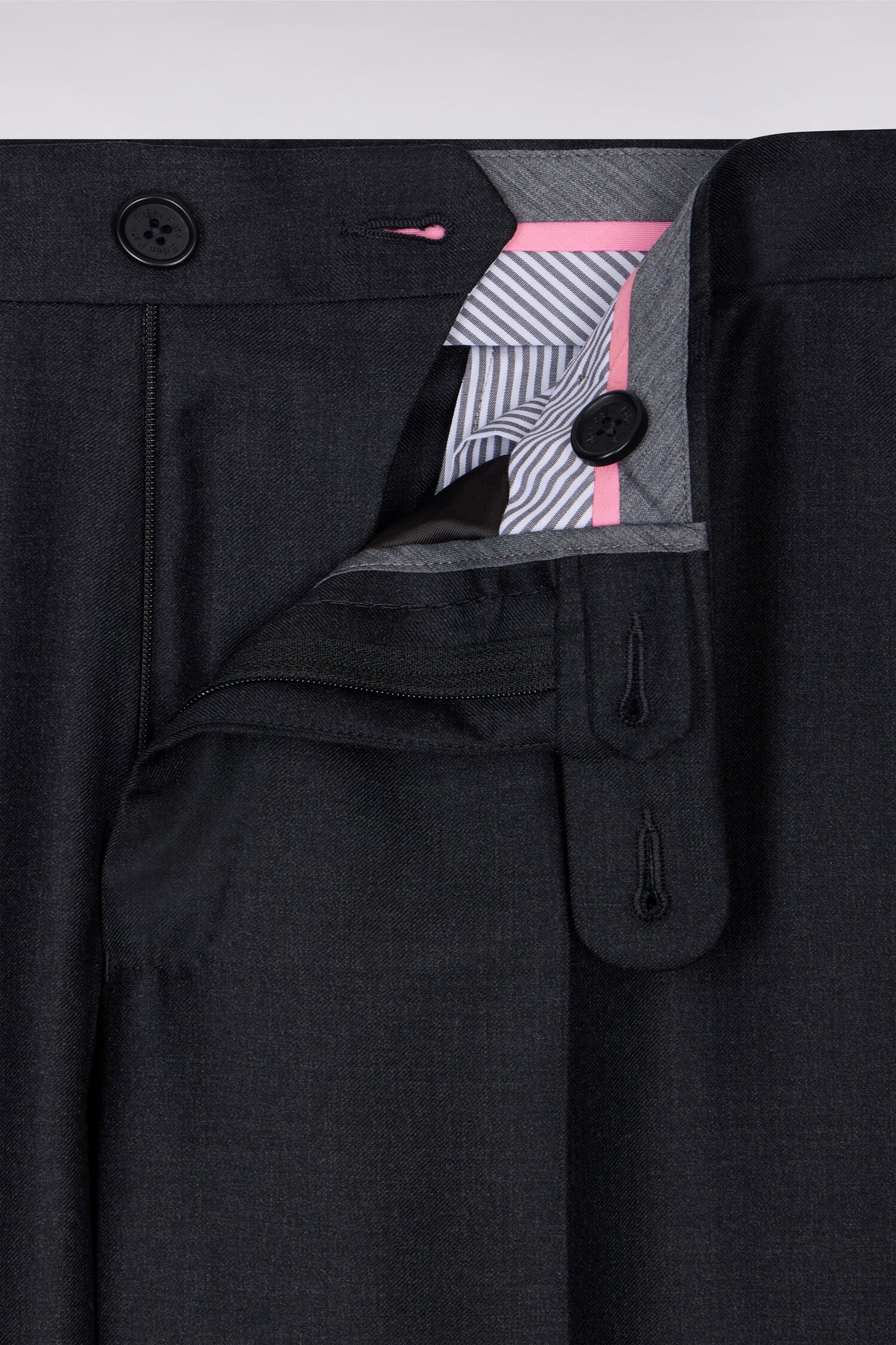 Regular dark grey wool trousers with broken fold