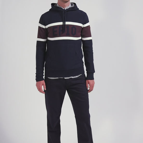Regular navy blue hooded jumper with EP10 jacquard