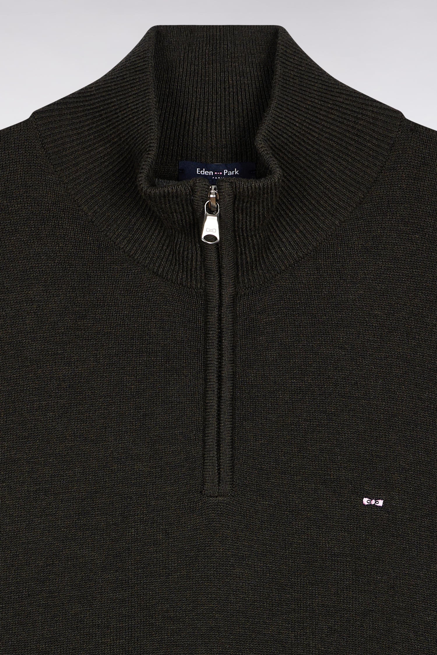 A men's wardrobe classic, the zipped trucker-neck sweater in wool and cotton blend embodies the functional elegance of the Eden Park wardrobe. Its comfortable straight cut lends itself to all kinds of layering. The bowtie embroidery on the chest and the signature slider zip give this timeless sweater the discreet signature of our French house. All you have to do is choose from 14 colors!