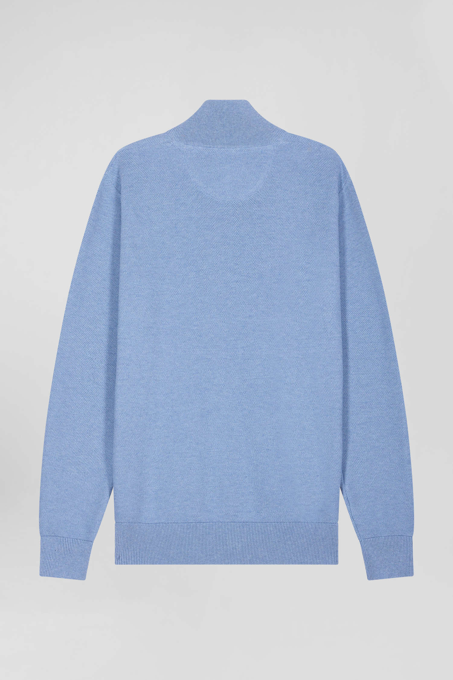 Crafted in pure cotton, this trucker-neck sweater features delicate bow-tie embroidery on the chest, marking our signature look. Its signature zipped collar with slider adds a practical touch, perfect for layering or a sharp look worn alone next to the skin.