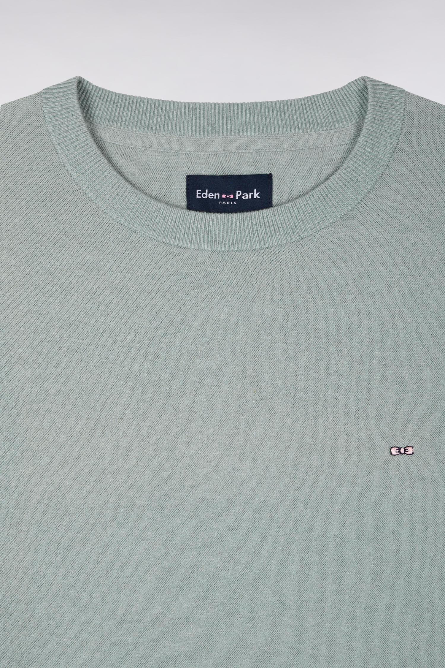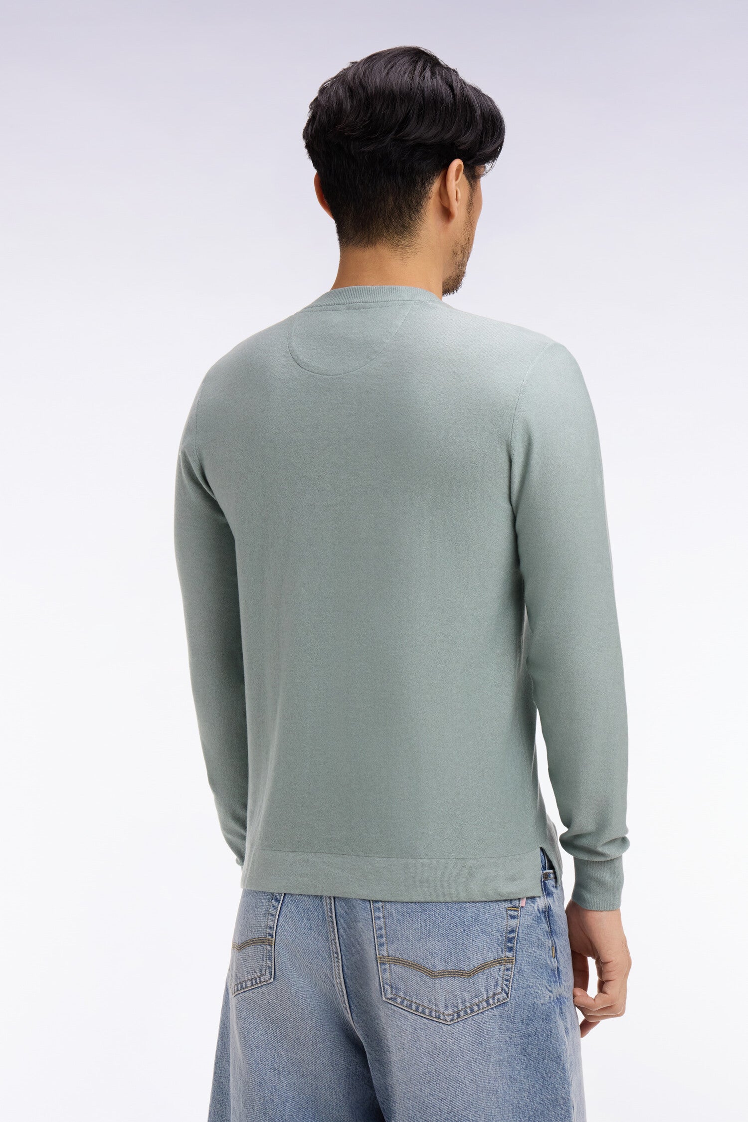 Pull col rond en coton et lyocell mélangés vert d'eau