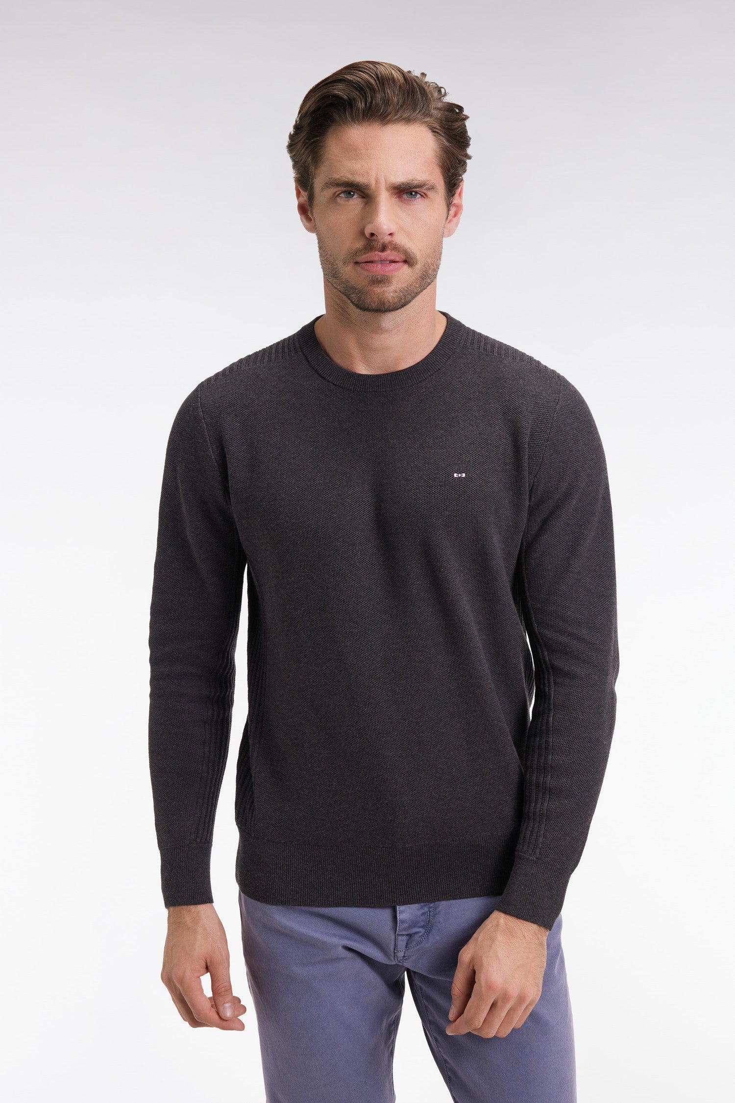 Knitted in honeycomb-stitch cotton for a lightweight, textured effect, this men's sweater features ribbed detailing on the side, shoulders and undersleeves. Comfortable and versatile, this round-neck model is available in a range of classic colors. An essential to wear season after season