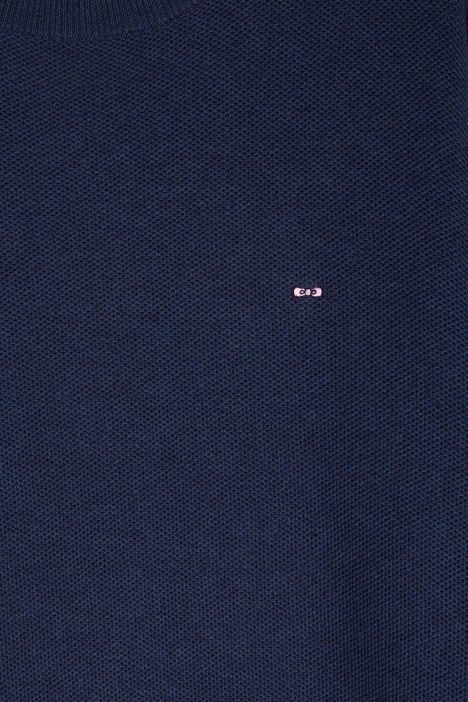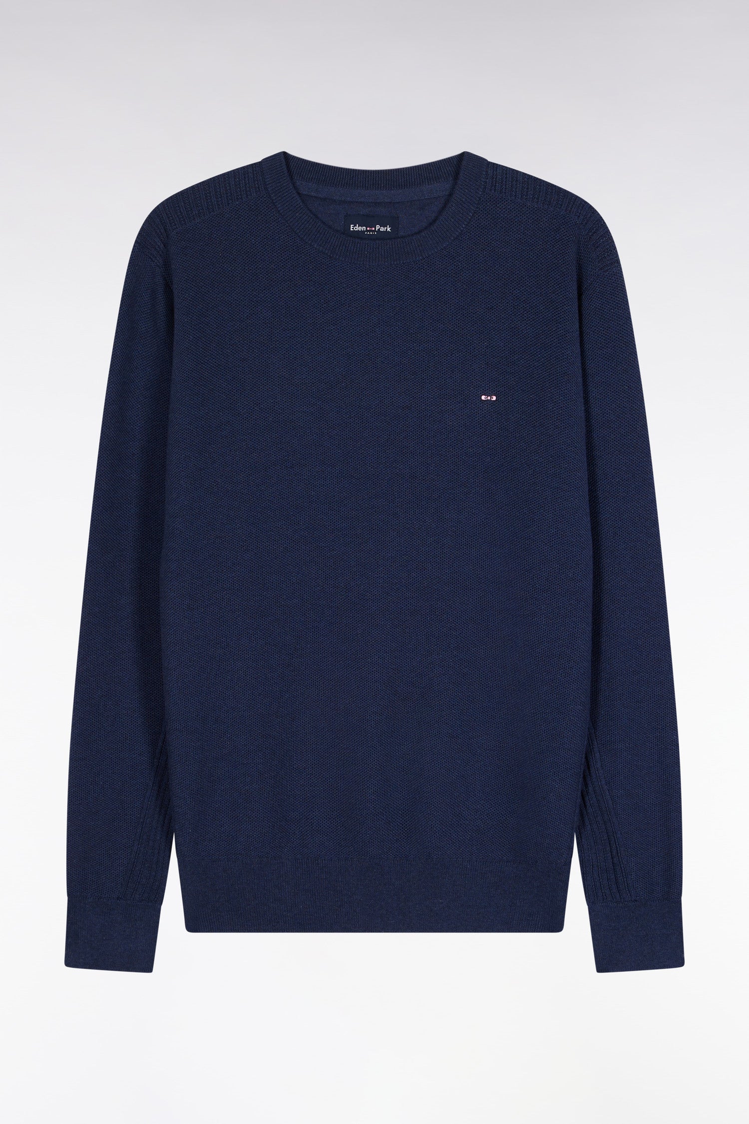 Round-neck sweater in navy cotton honeycomb