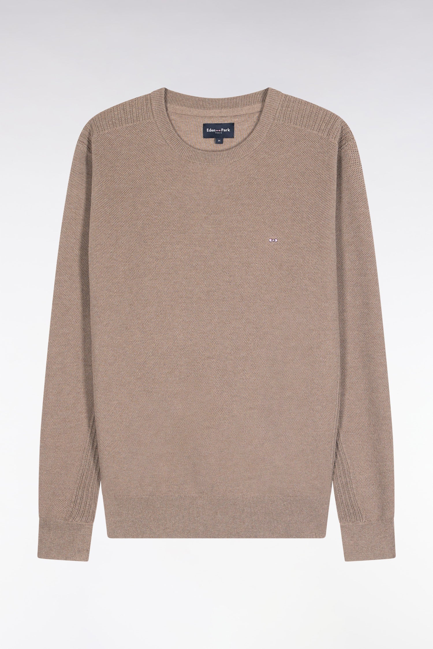 Knitted in honeycomb-stitch cotton for a lightweight, textured effect, this men's sweater features ribbed detailing on the side, shoulders and undersleeves. Comfortable and versatile, this round-neck model is available in a range of classic colors. An essential to wear season after season