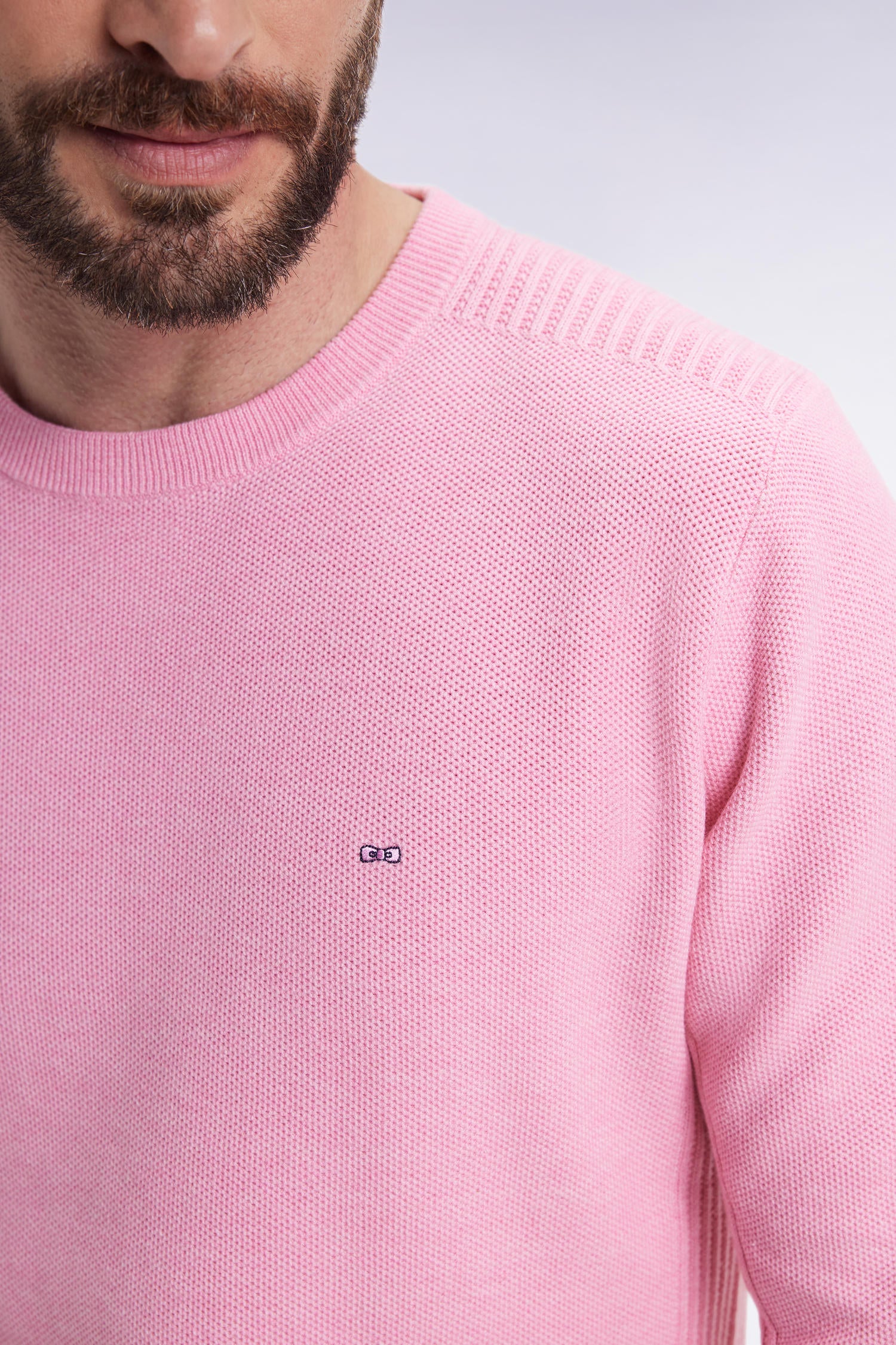 Knitted in honeycomb-stitch cotton for a lightweight, textured effect, this men's sweater features ribbed detailing on the side, shoulders and undersleeves. Comfortable and versatile, this round-neck model is available in a range of classic colors. An essential to wear season after season