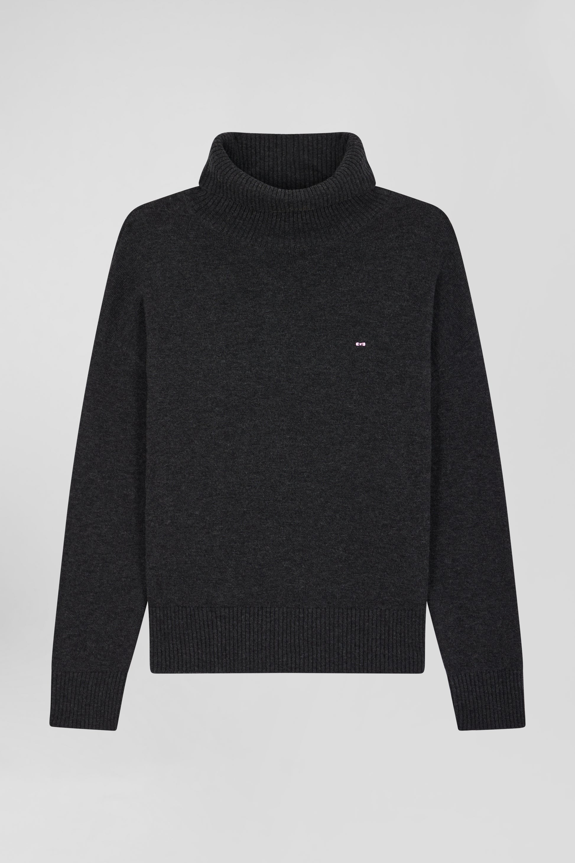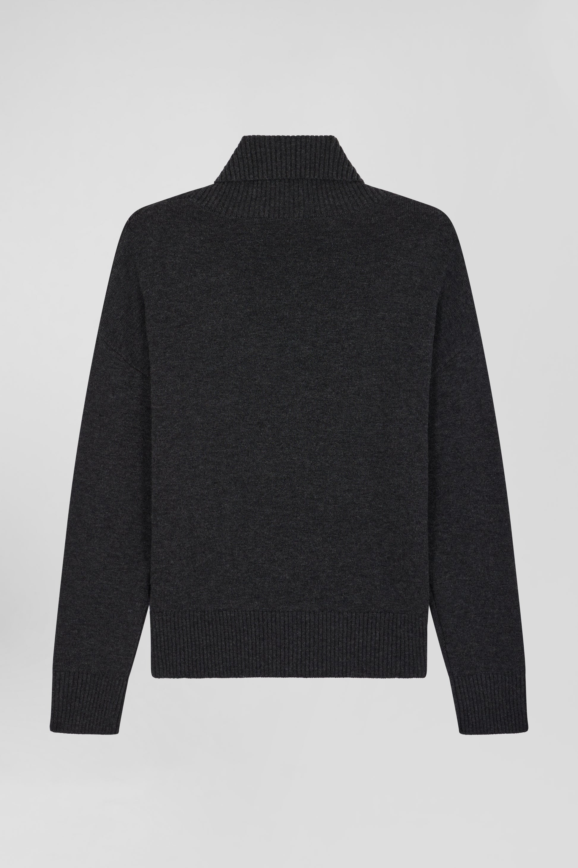 Relaxed mottled grey wool and cotton turtleneck jumper