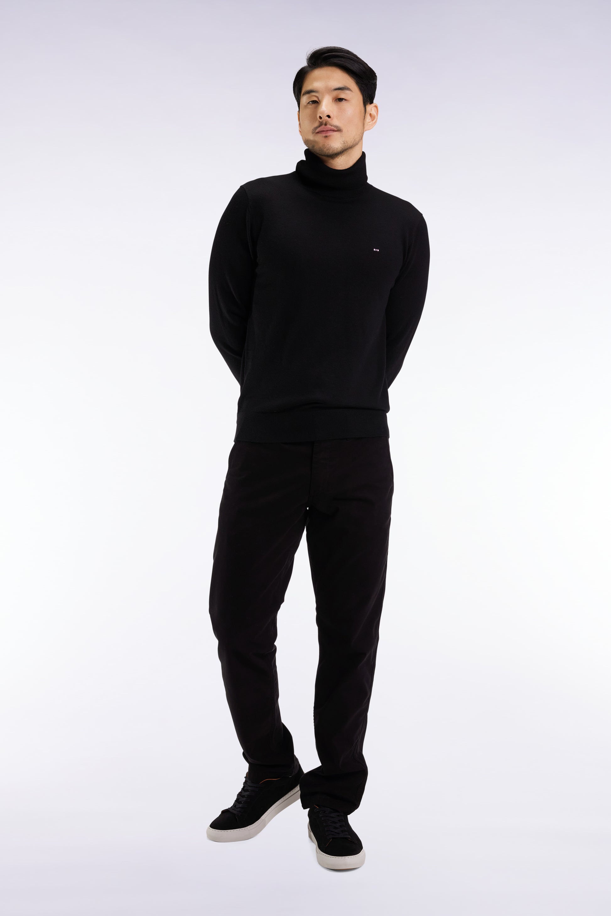 The centerpiece of a chic, minimalist winter wardrobe, this turtleneck sweater is made from pure merino wool, a noble wool renowned for its softness, warmth and natural breathability. Knitted in an impeccable knit, this sweater features a comfortable straight cut and meticulous finishing touches. With its bowtie embroidery on the chest, this merino wool sweater is available in black, burgundy, navy or brown. Wear alone or under a jacket, for an elegant look in all circumstances.