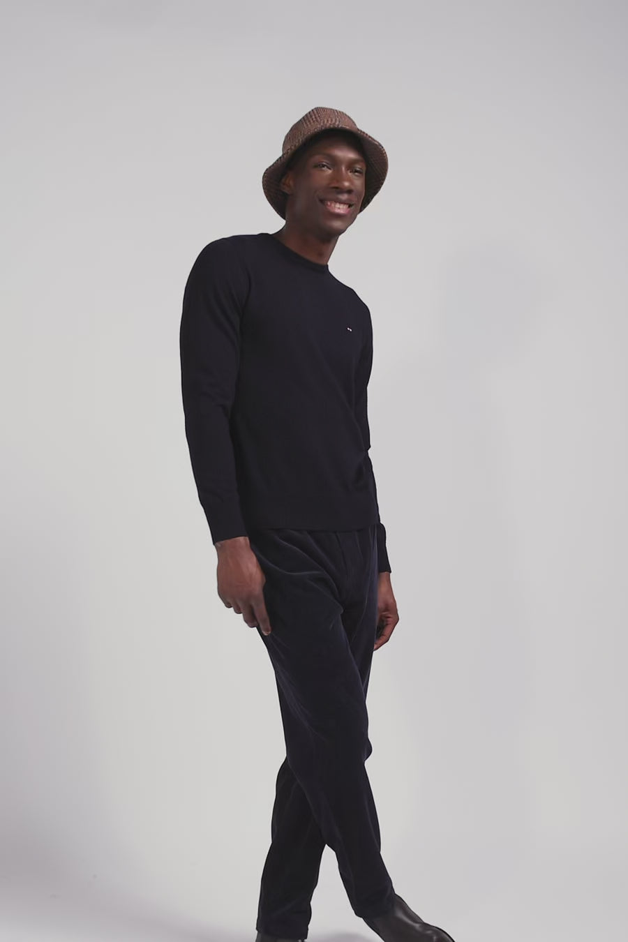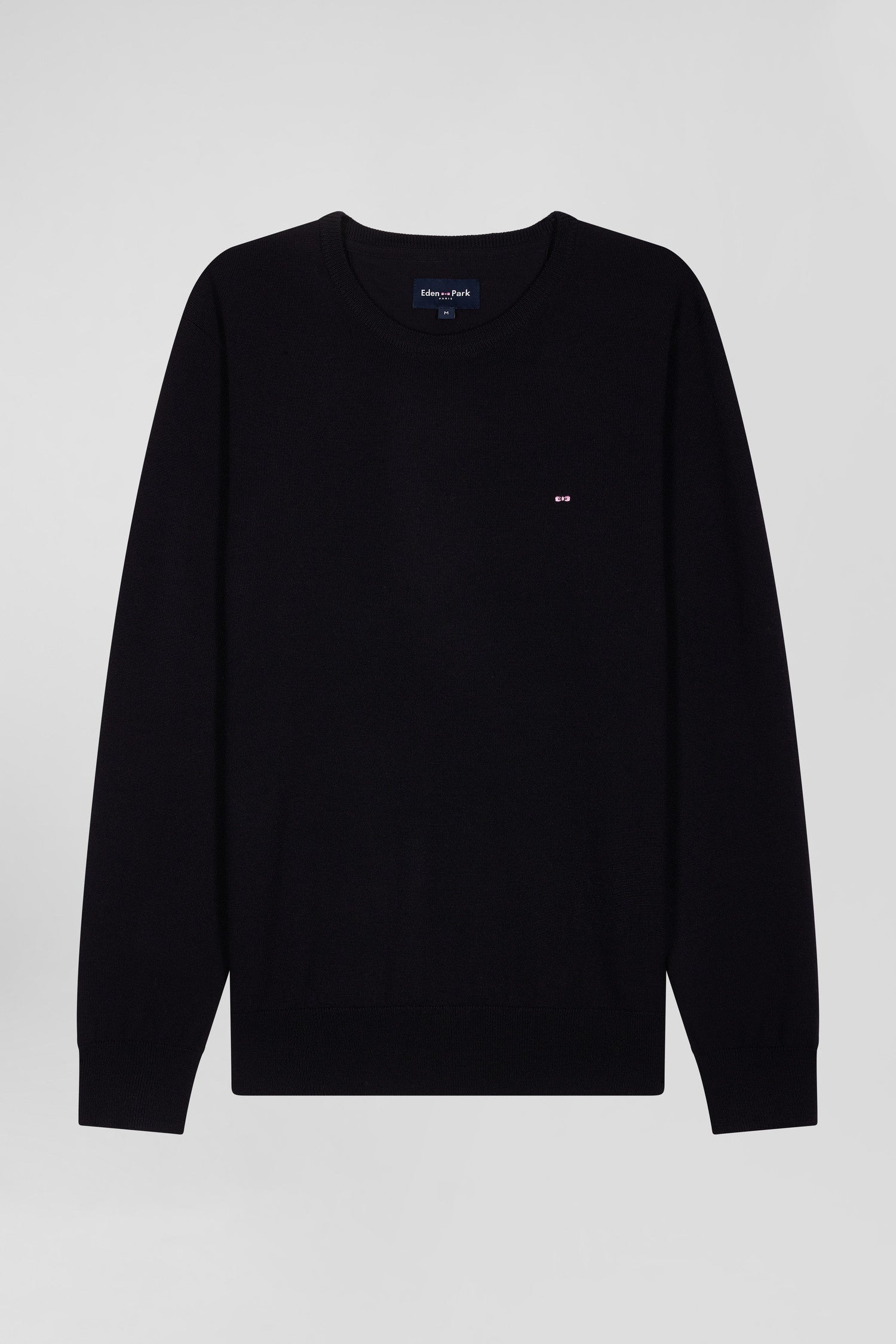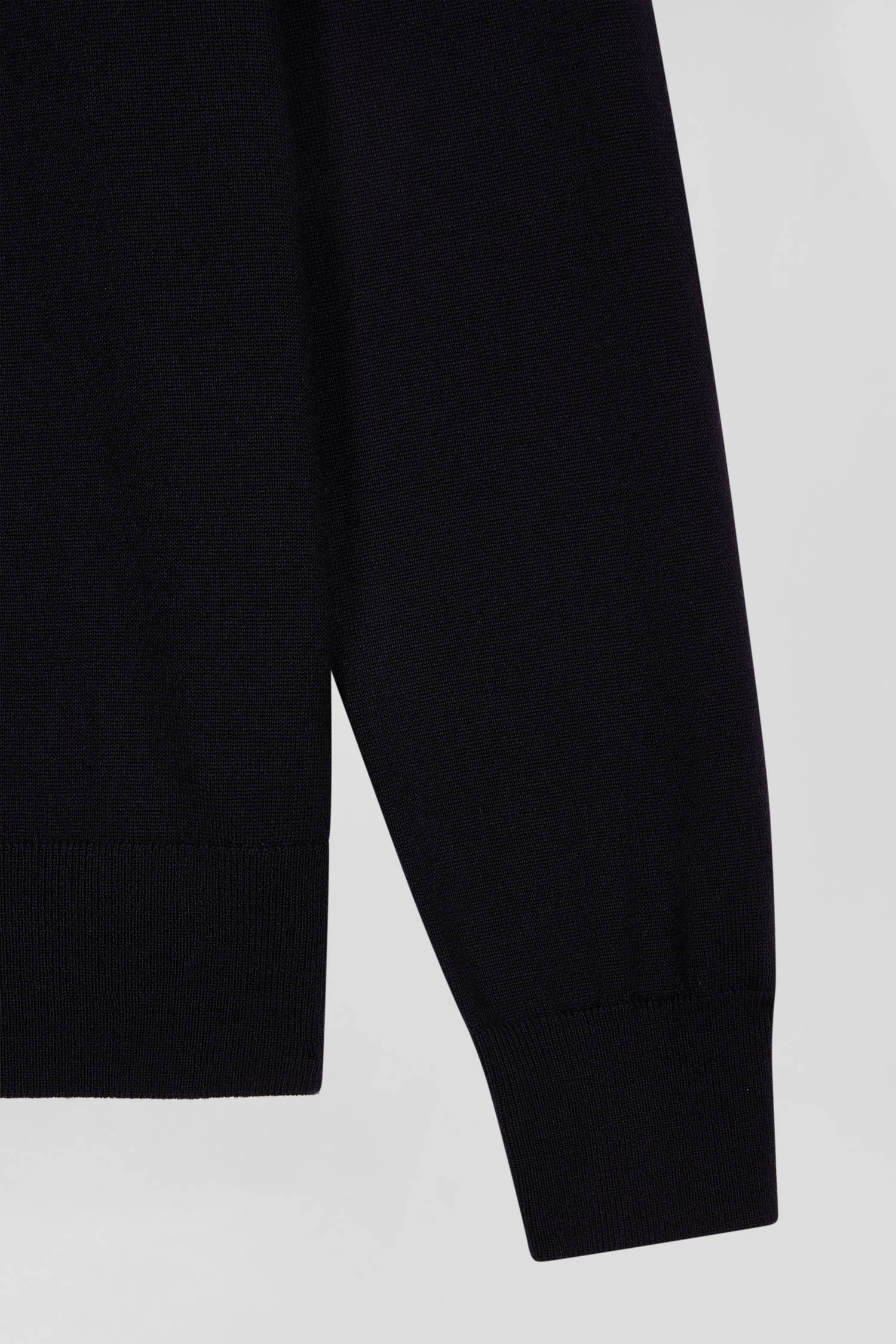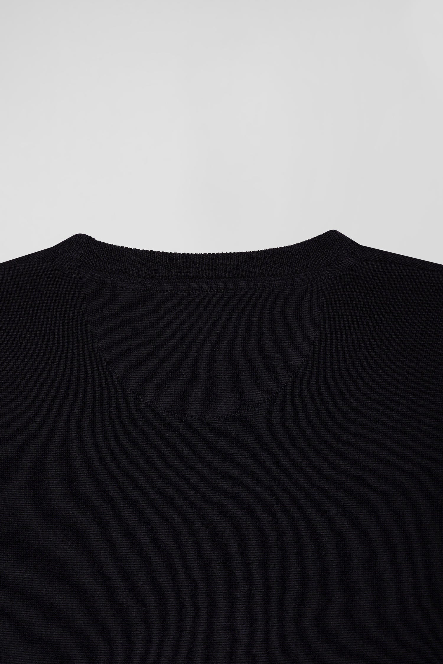 This sweater in merino wool, a noble natural fiber with many properties, is enhanced by a jersey knit for a sleek, elegant style. Featuring a round neck for a classic silhouette, this plain sweater will quickly become a wardrobe staple. Complete your outfit with this versatile piece, enhanced by our bow-tie embroidery and knitted ribbing for an impeccable finish and perfect support.