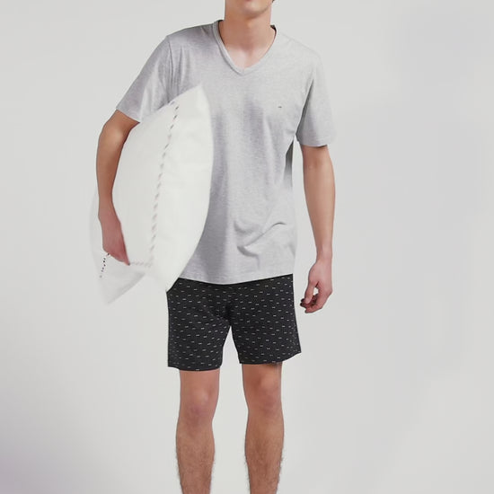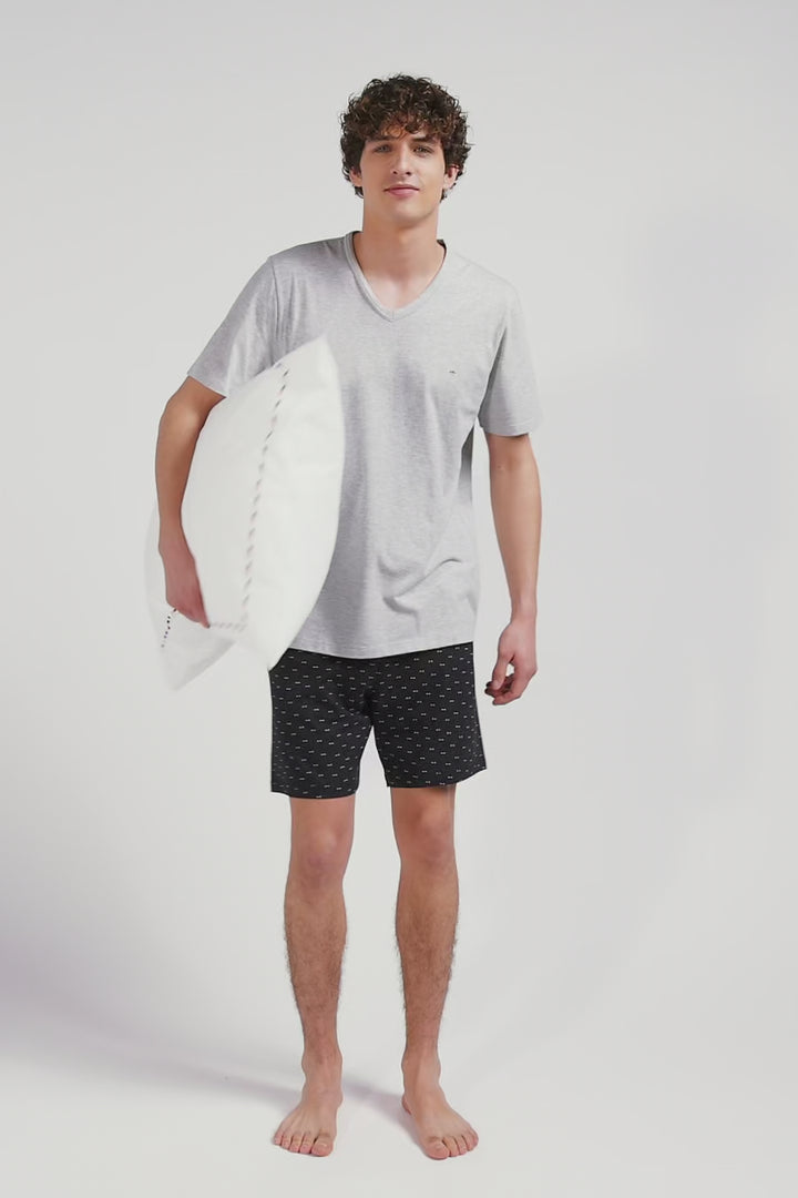Grey short cotton pajamas with micro pattern shorts