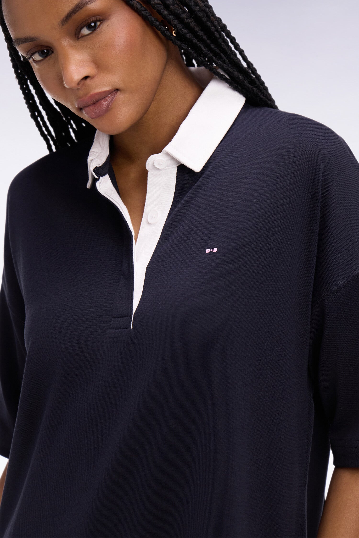 Épurée et féminine, cette robe polo à manches courtes en coton pur adopte une coupe droite qui allonge toutes les silhouettes. Son col polo contrasté blanc et sa broderie nœud papillon apportent à cette robe marine une touche distinctement Eden Park. Facile à porter avec une veste légère et des sneakers pour un look moderne et confortable ou avec une paire de sandales pour une silhouette sport chic minimaliste à l'occasion d'une journée d'été ensoleillée.