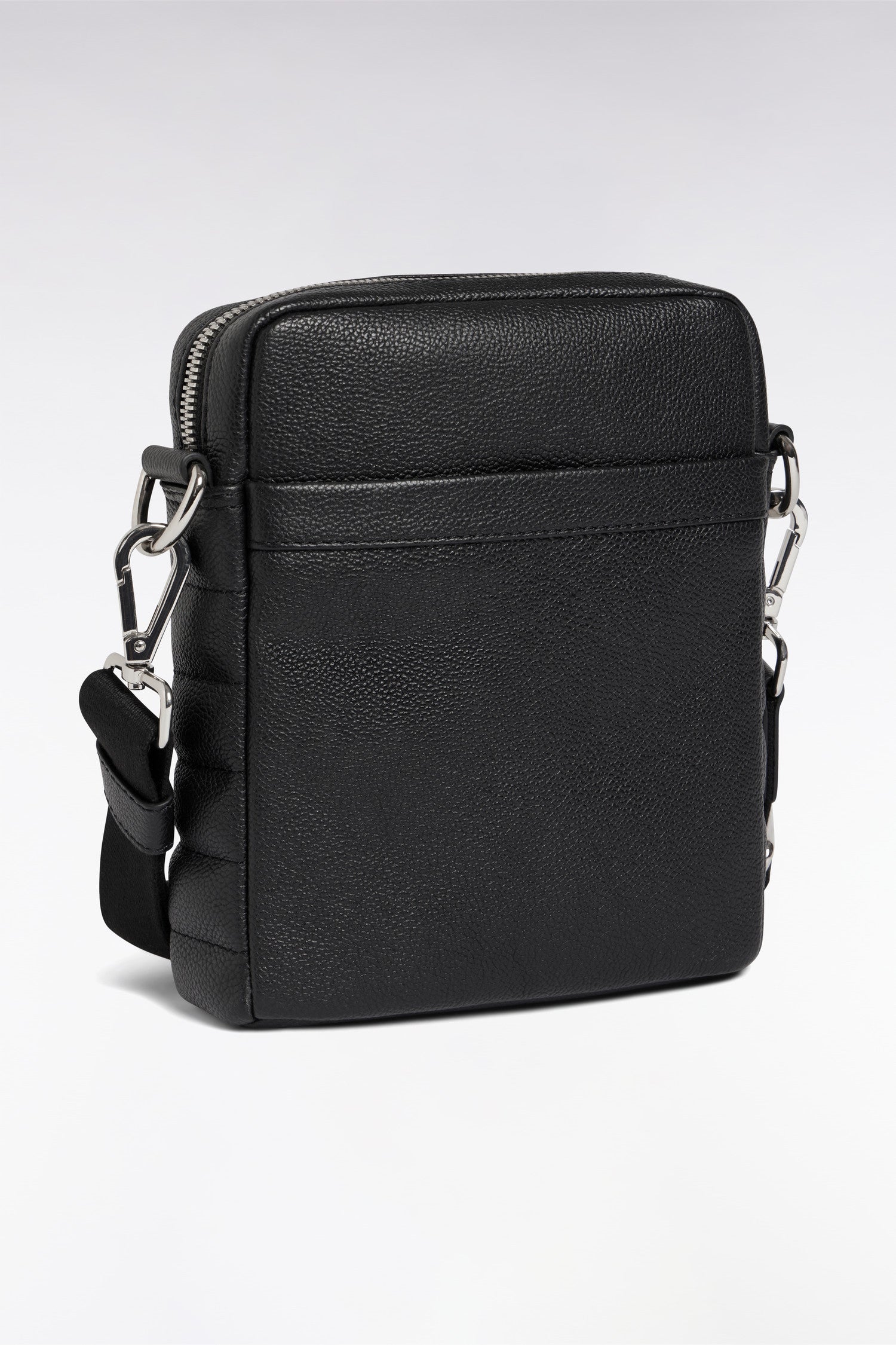 This men's bag with its minimalist design combines practicality and elegance. Ideal for urban adventures or everyday use, this masculine bag is crafted in luxurious grained leather in deep black, enlivened by its bow-tie embossing.