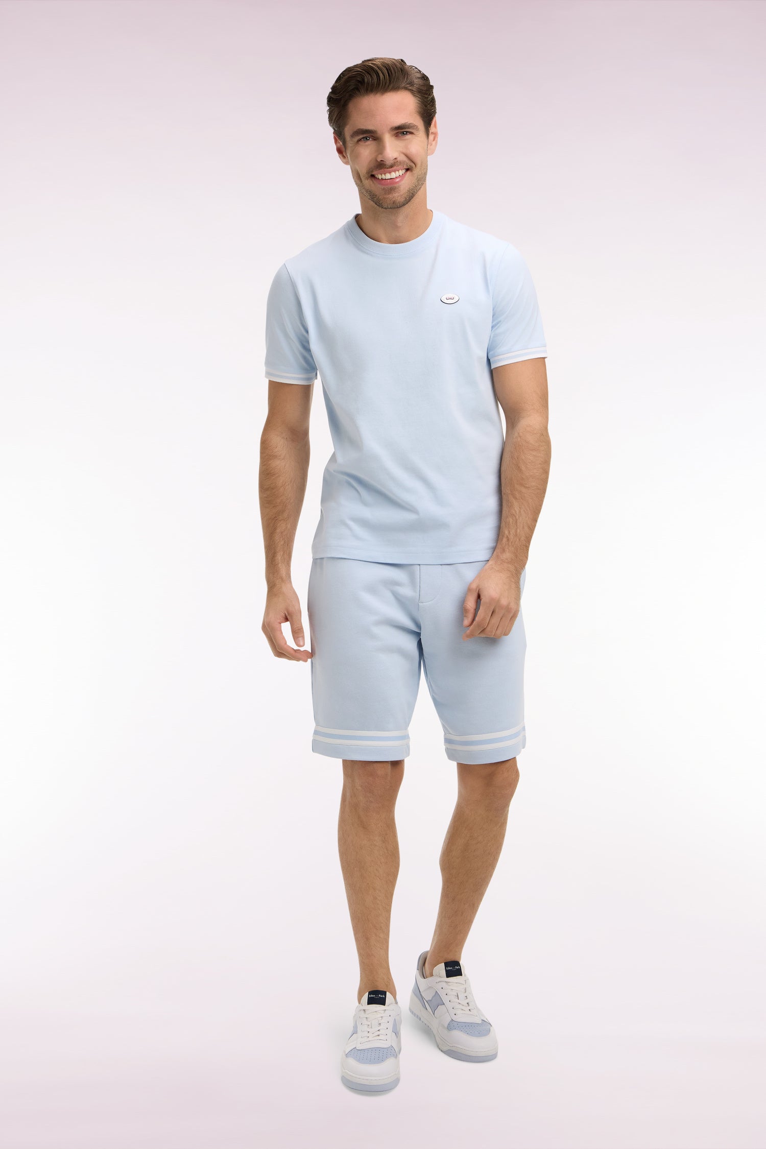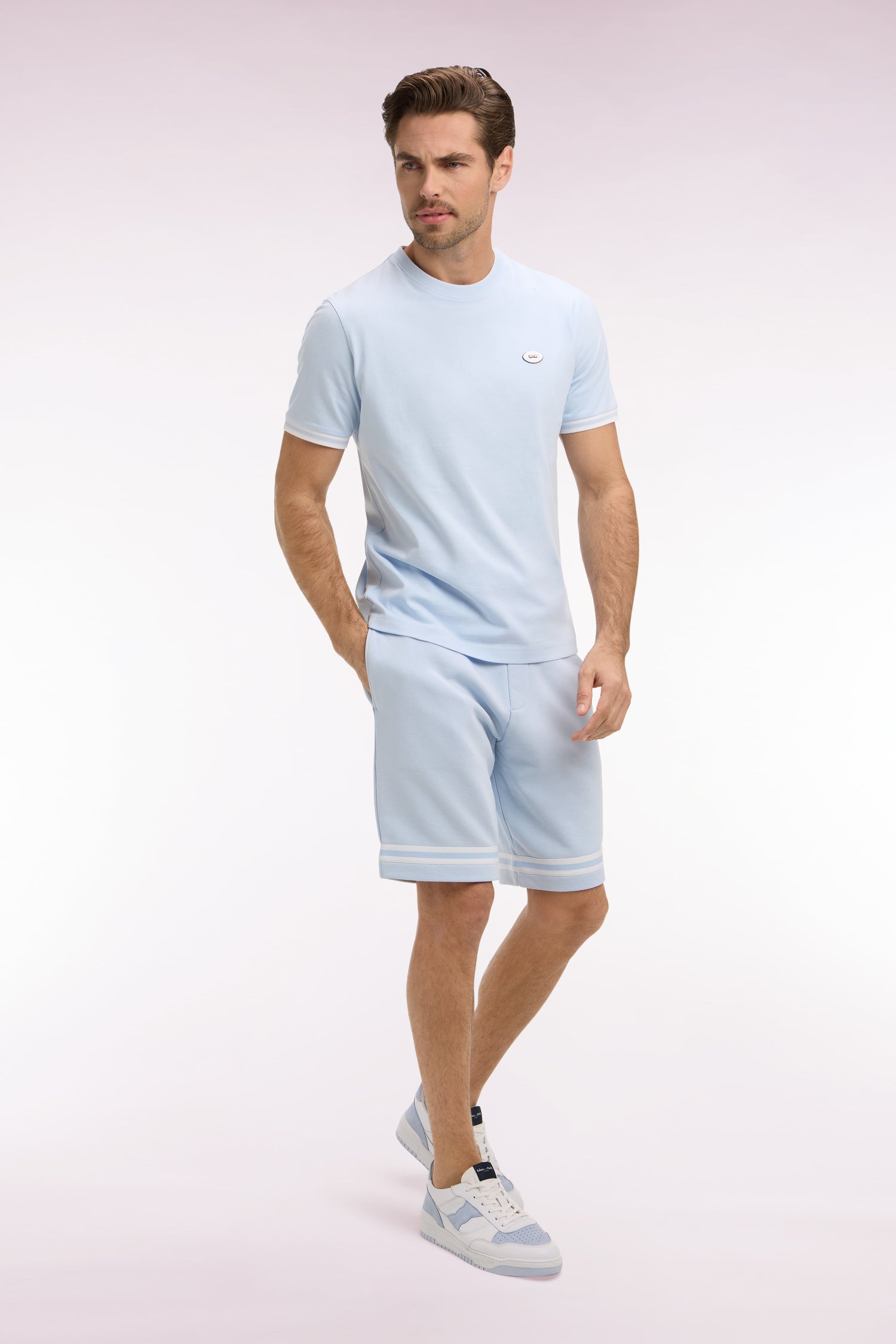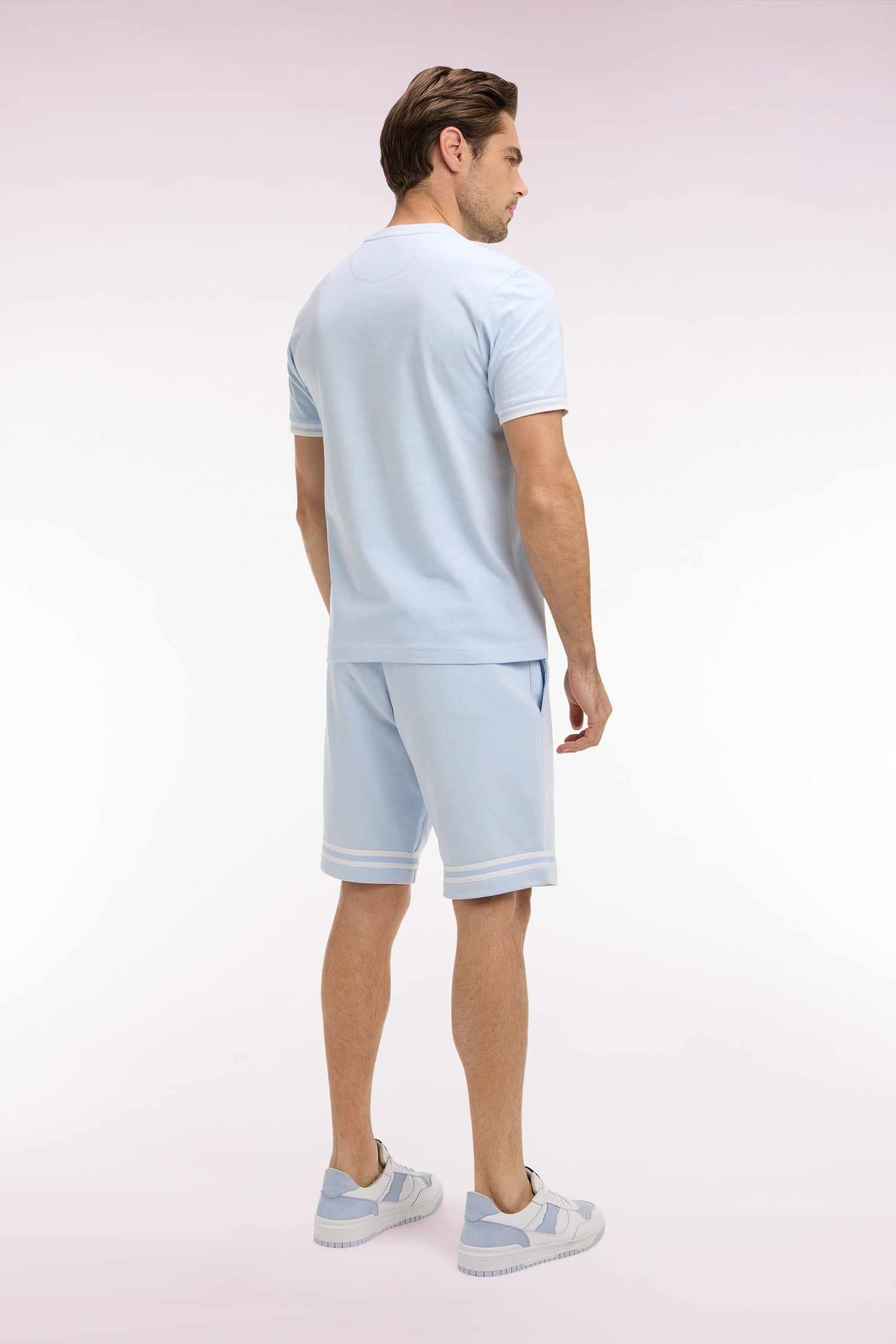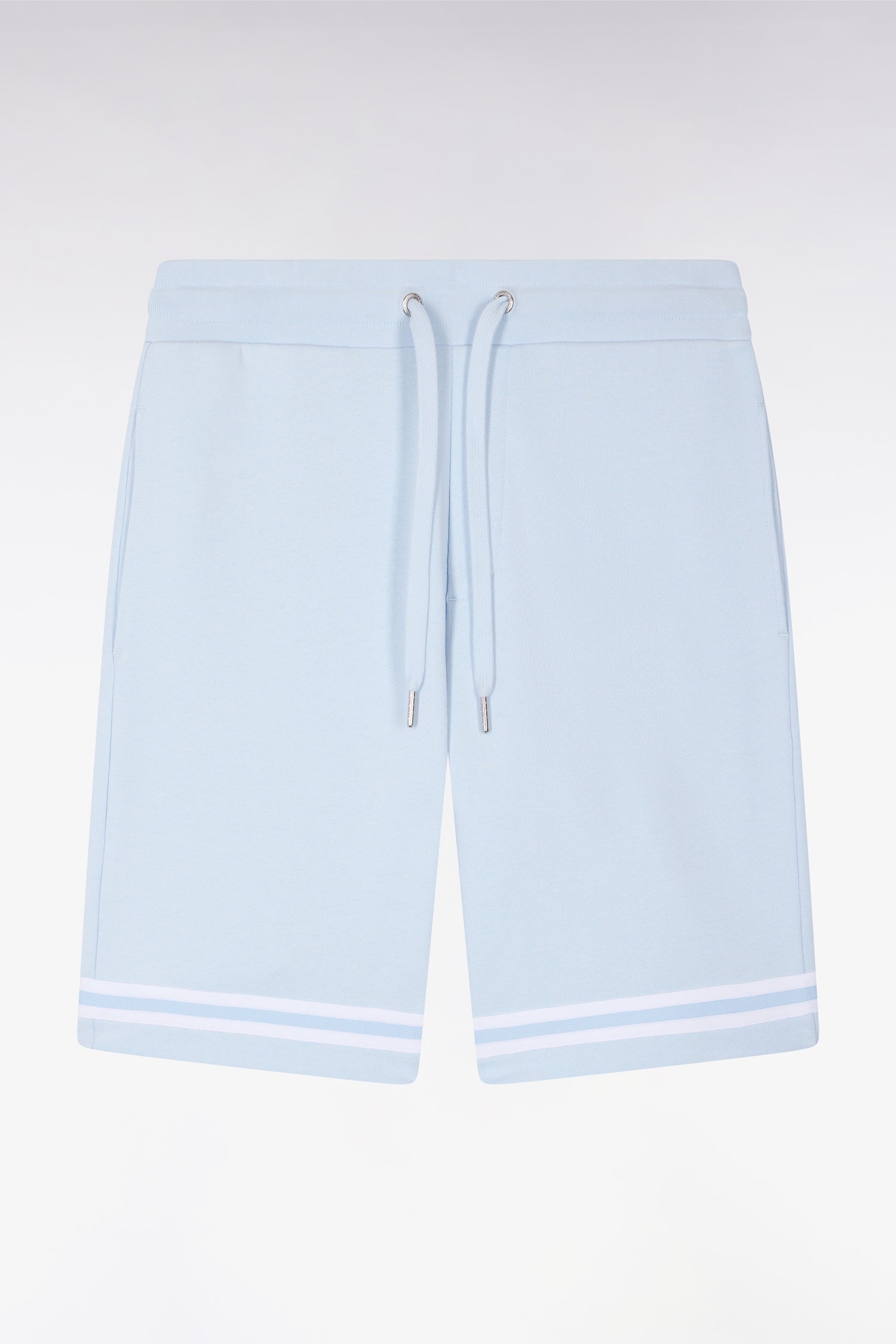 Short en molleton ciel à bordures de jambe rayées