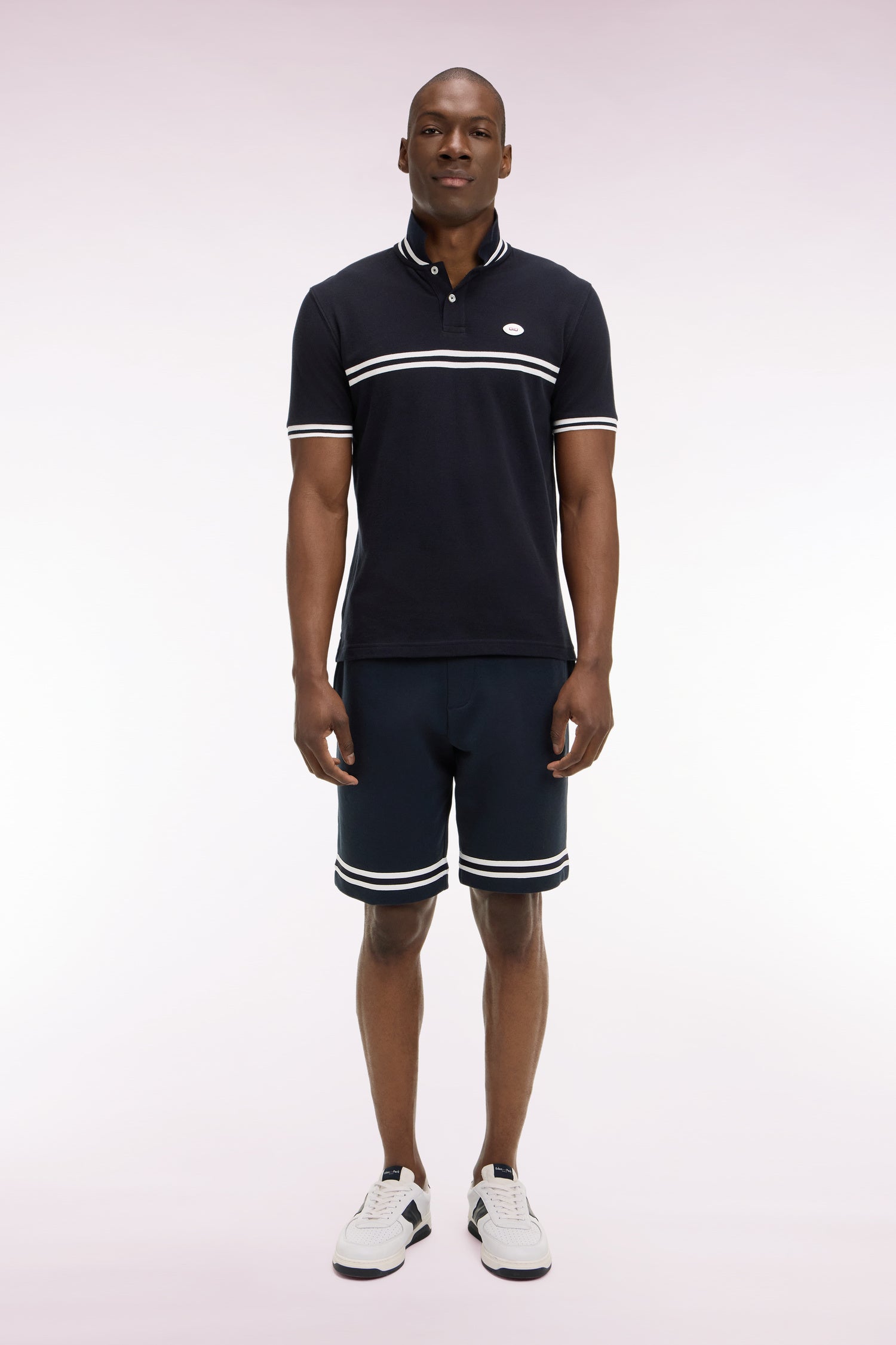 Alliance de confort et de style, ce short homme en molleton de coton doux s’inspire du vestiaire sportif en l'adaptant à la vie urbaine. Sa ceinture élastiquée à cordon de serrage uni assure un maintien idéal tandis que des finitions athlétiques, ruban rayé tricoté en bordure de jambe et badge rugby en gomme sur la poche arrière signent cet essentiel décontracté. Polo, tee-shirt et sweatshirt ont été développés par nos ateliers avec la même exigence pour un style sans compromis.