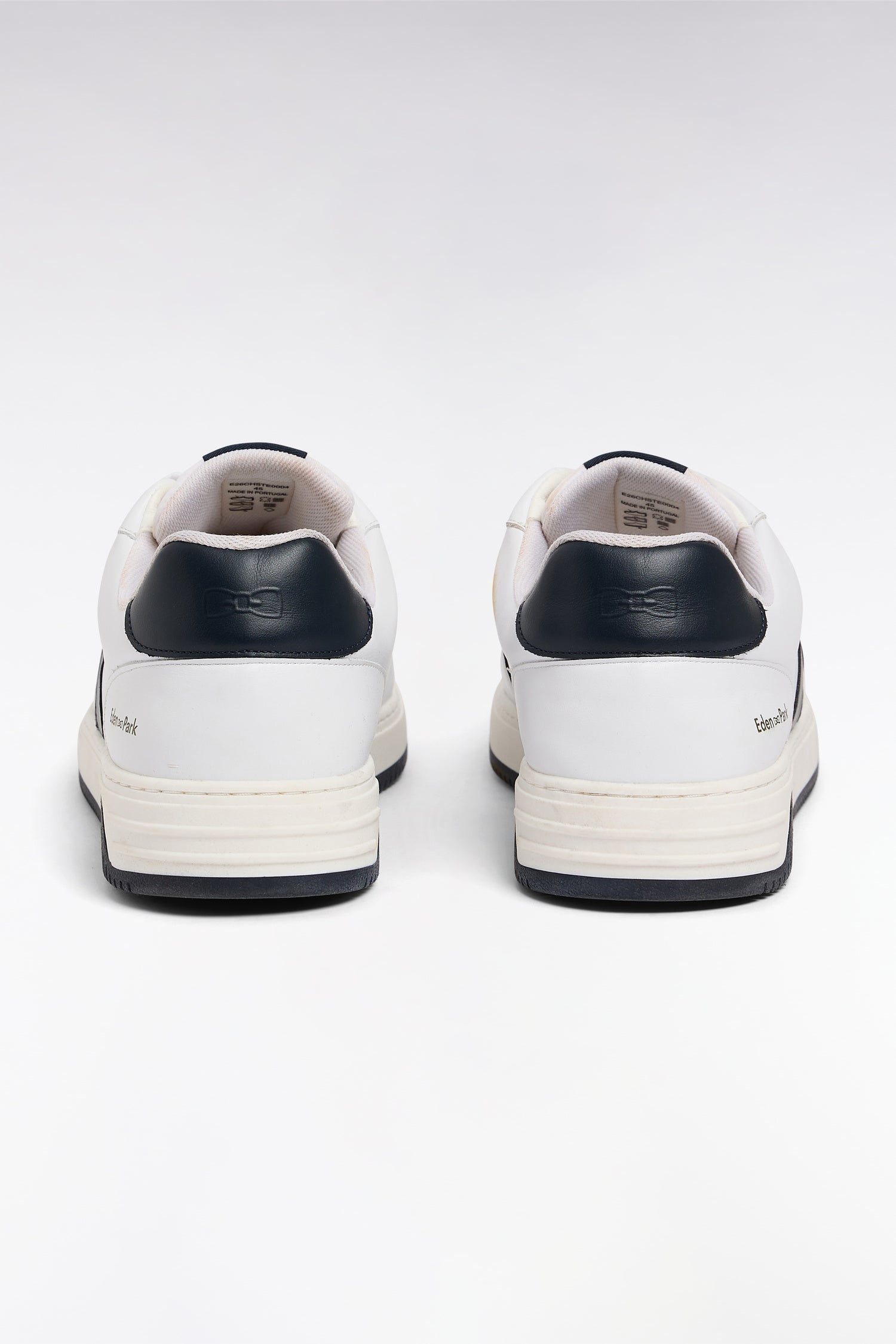 Cette basket basse associe une base en cuir lisse blanc à des empiècements contrastés qui apportent fraîcheur et modernité à la silhouette grâce à leur découpe nœud papillon. Son design épuré, ponctué de perforations discrètes sur l’avant, s'inscrit dans les codes sportswear. La semelle épaisse renforce son allure contemporaine tout en assurant confort et stabilité au quotidien. Facile à associer, cette basket accompagne aussi bien un jean qu’un pantalon plus structuré, pour une silhouette casual chic parfaitement maîtrisée. Une paire idéale pour insuffler une touche dynamique au vestiaire masculin en toute saison.