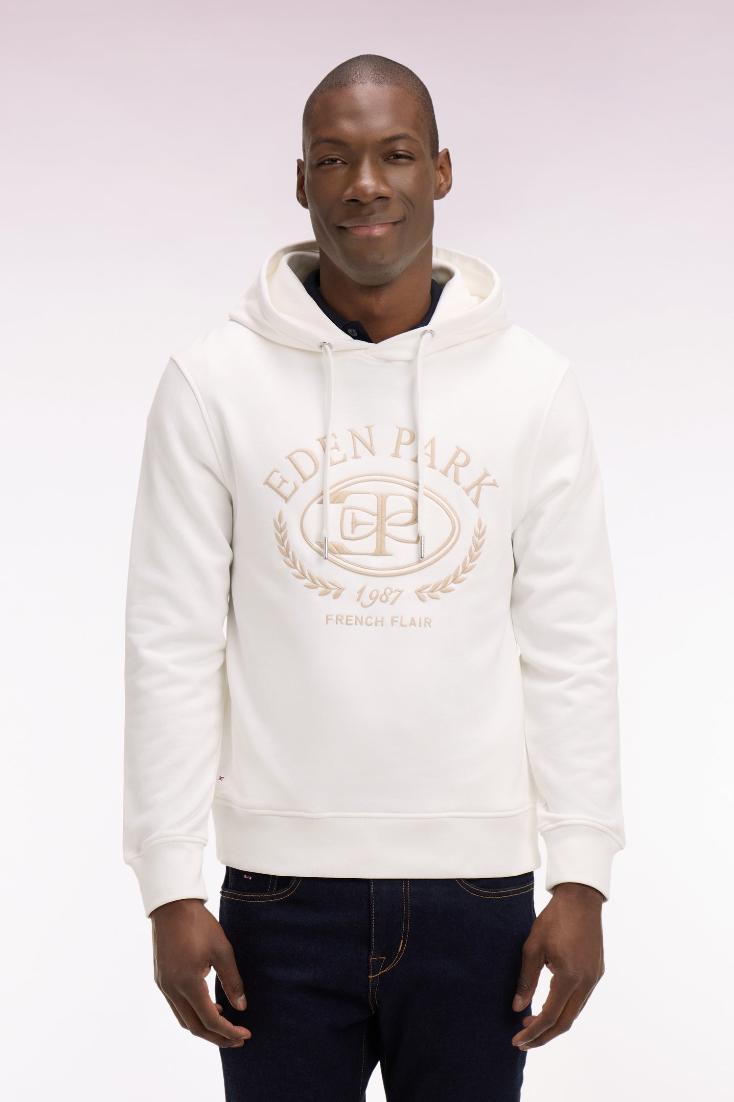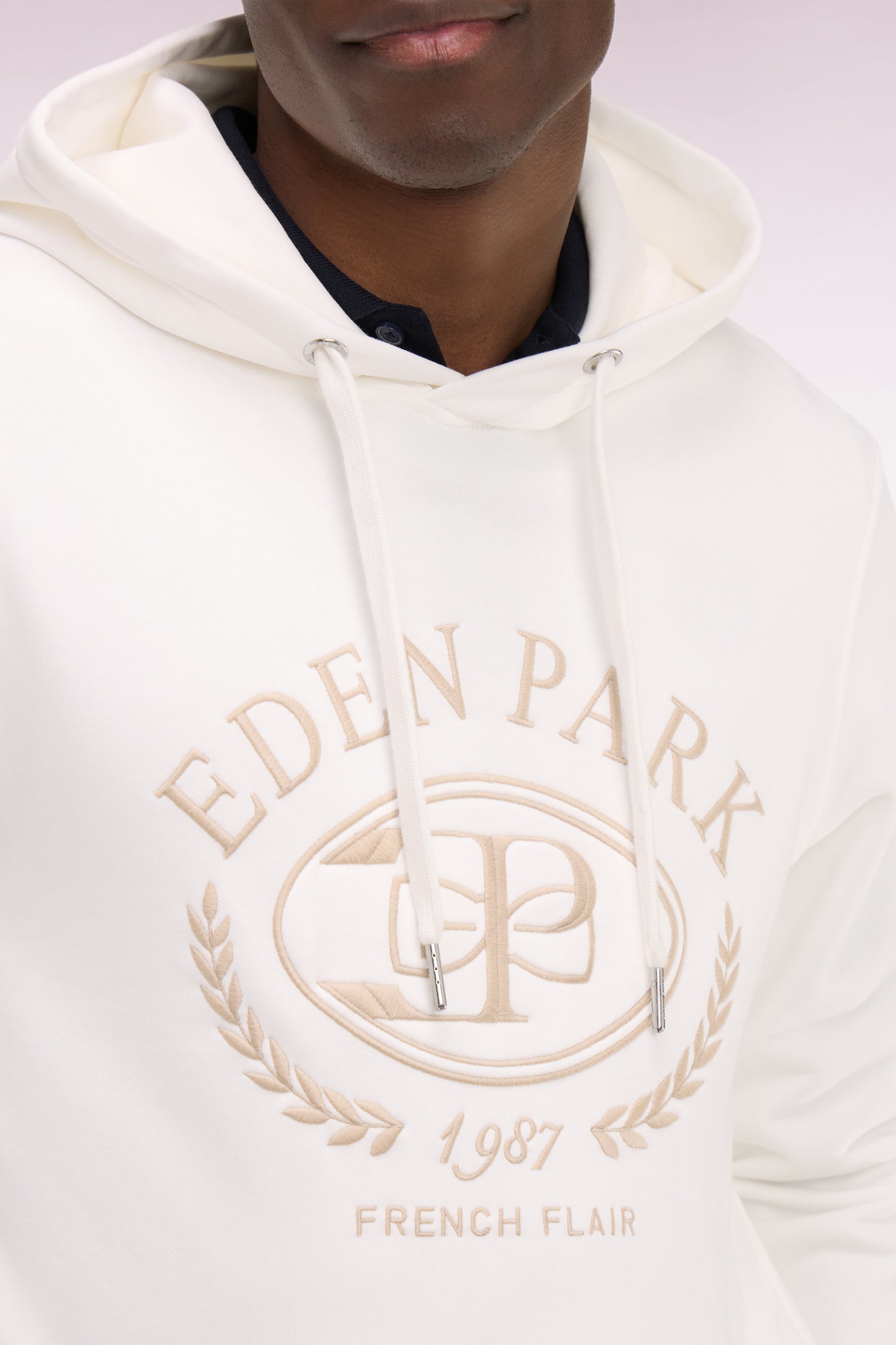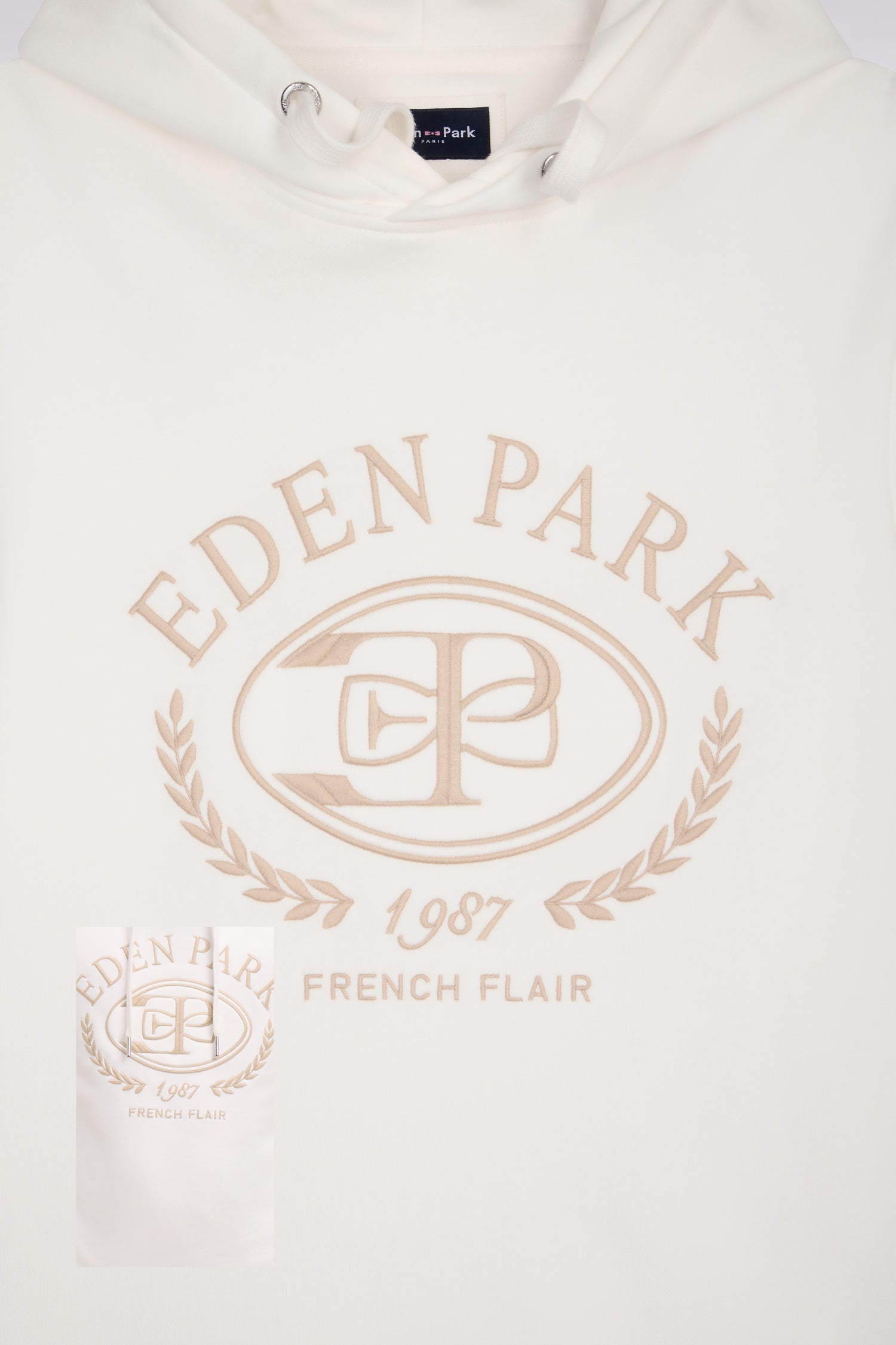 Sweatshirt à capuche brodé écru