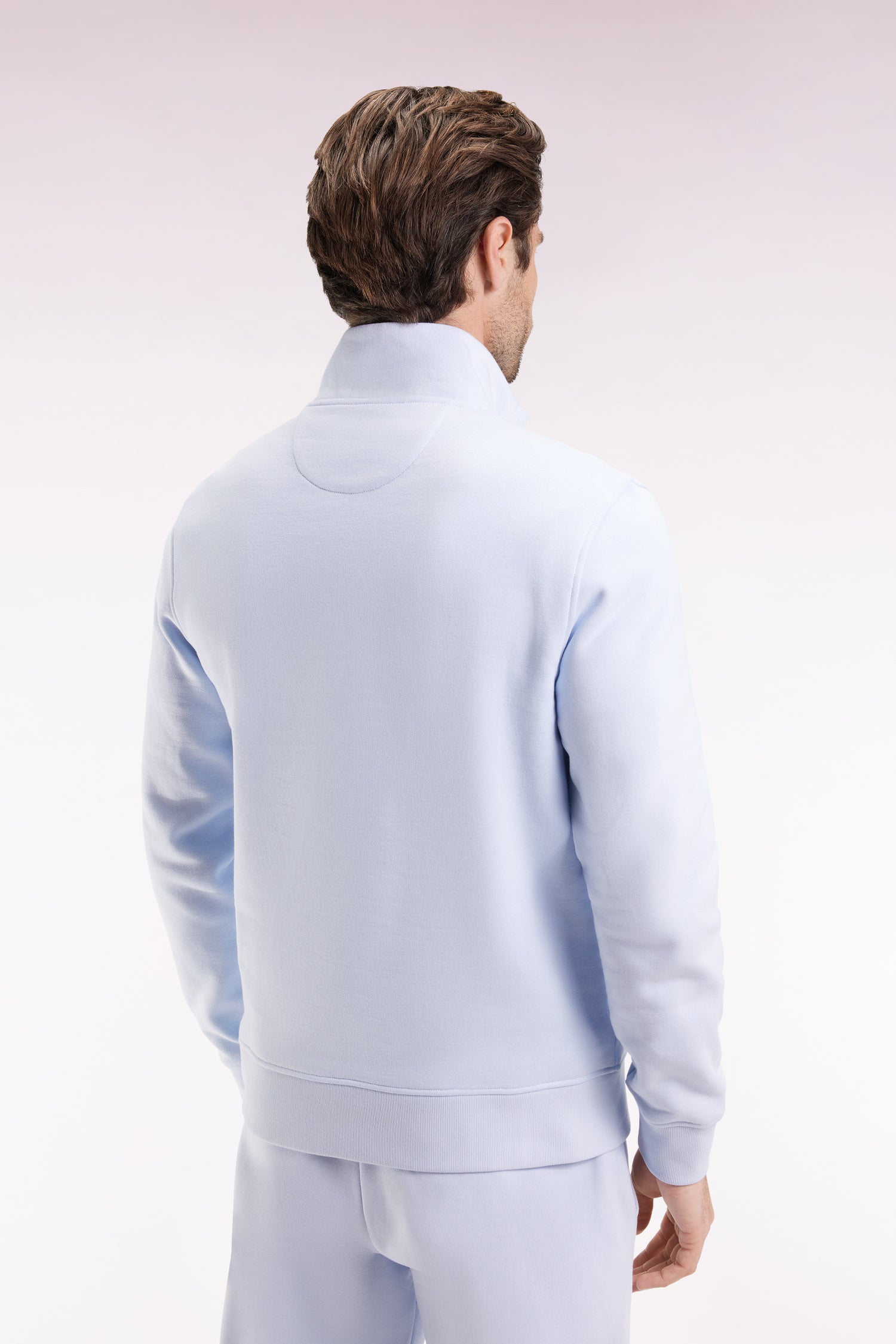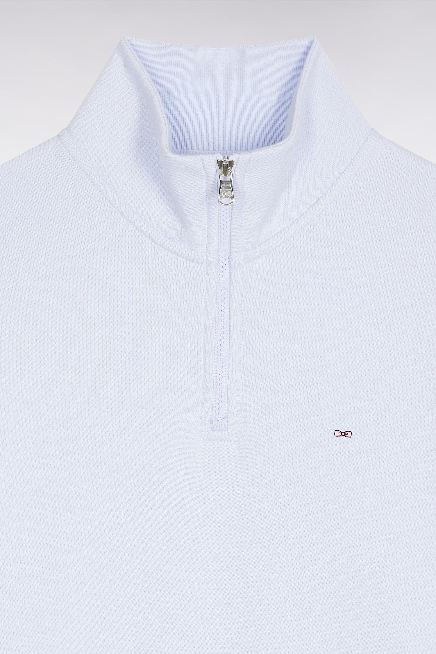 High-neck zip-up sweatshirt in sky cotton fleece