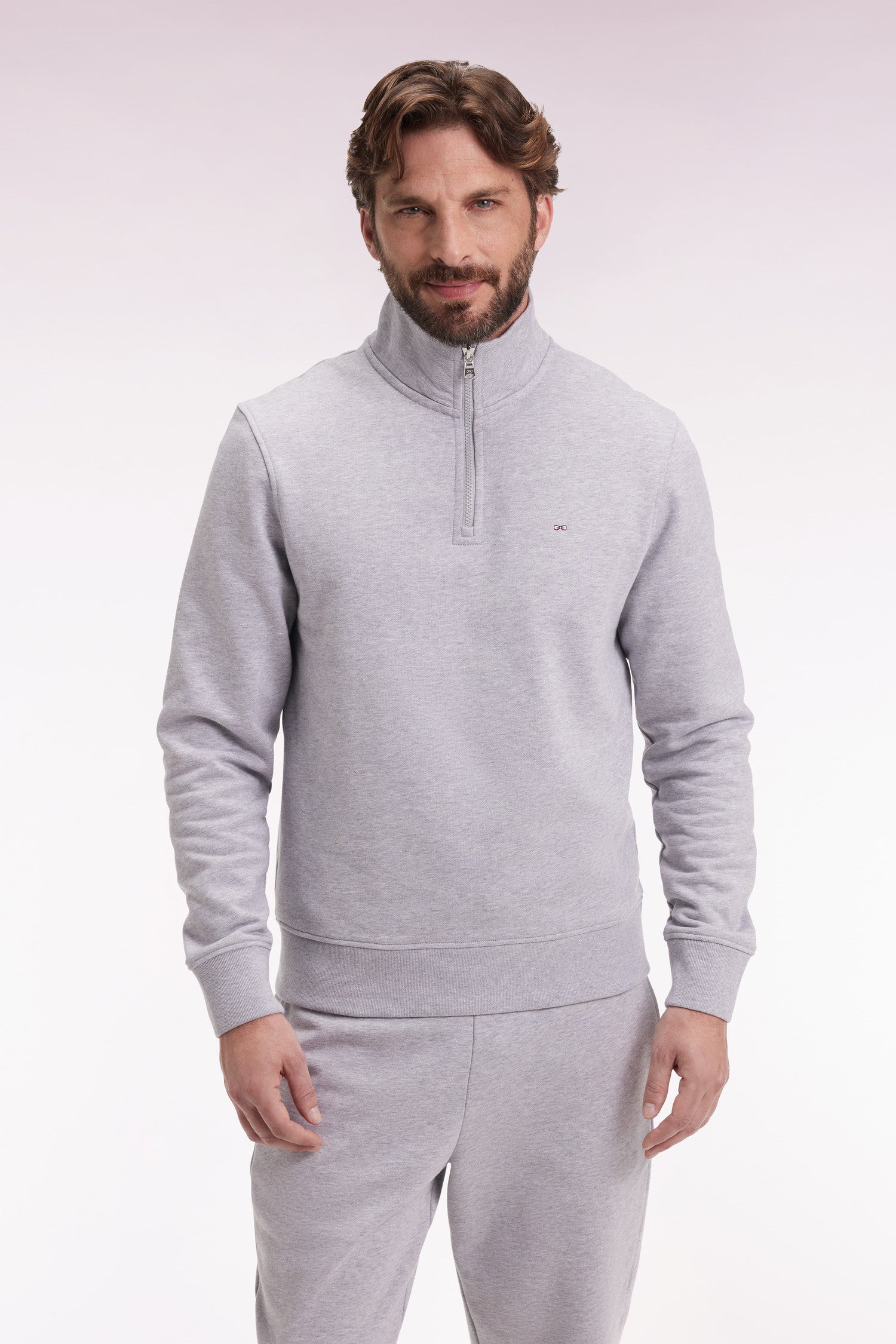 This zip-up stand-up collar sweatshirt in brushed fleece is a casual wardrobe essential. Its ribbed collar, cuffs and hem ensure a comfortable fit. Available in a wide range of colors, this men's sweatshirt can be worn with matching jogging suits or jeans.