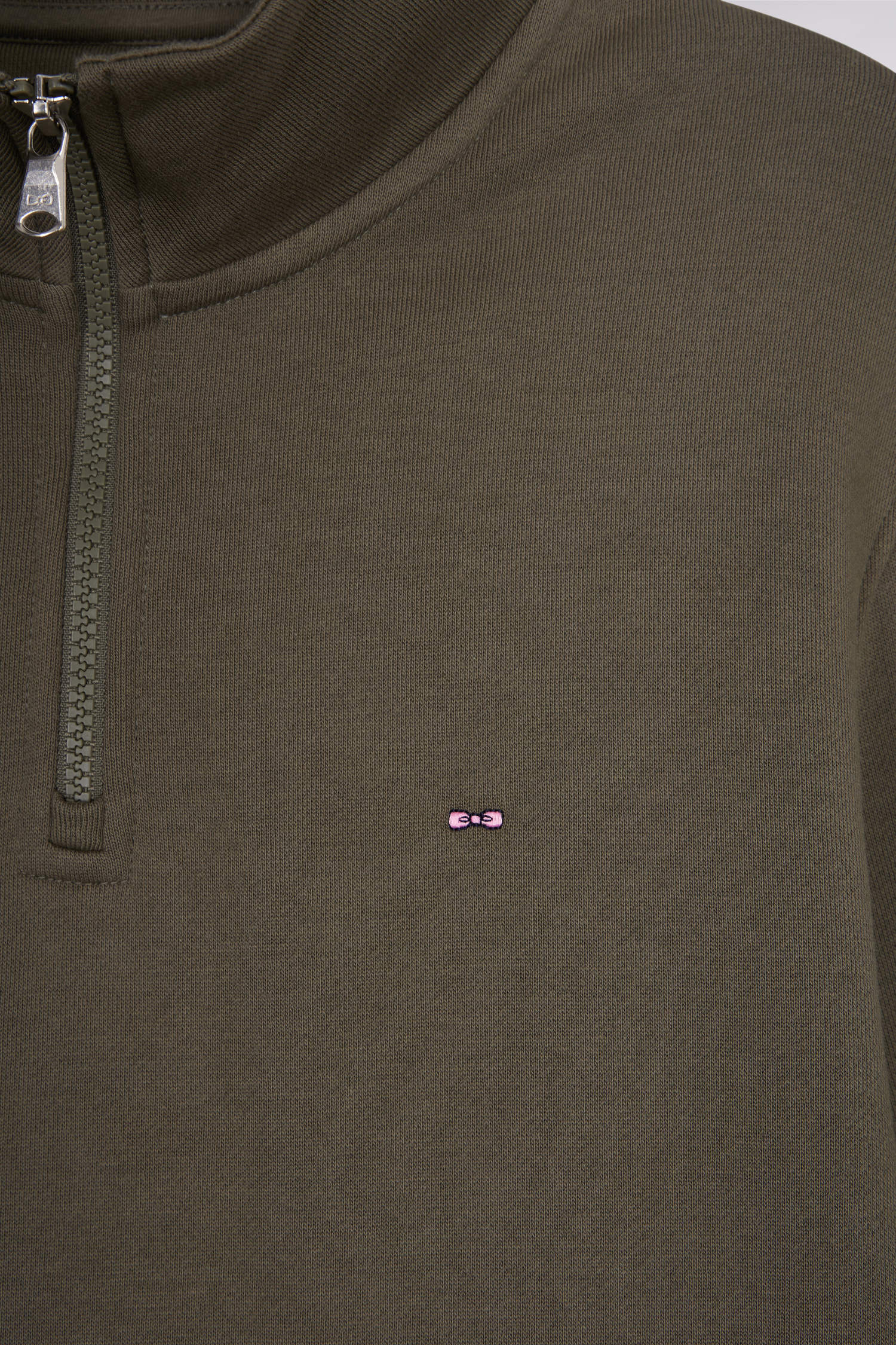 Khaki cotton fleece stand-up collar zip-up sweatshirt - CANCELLED