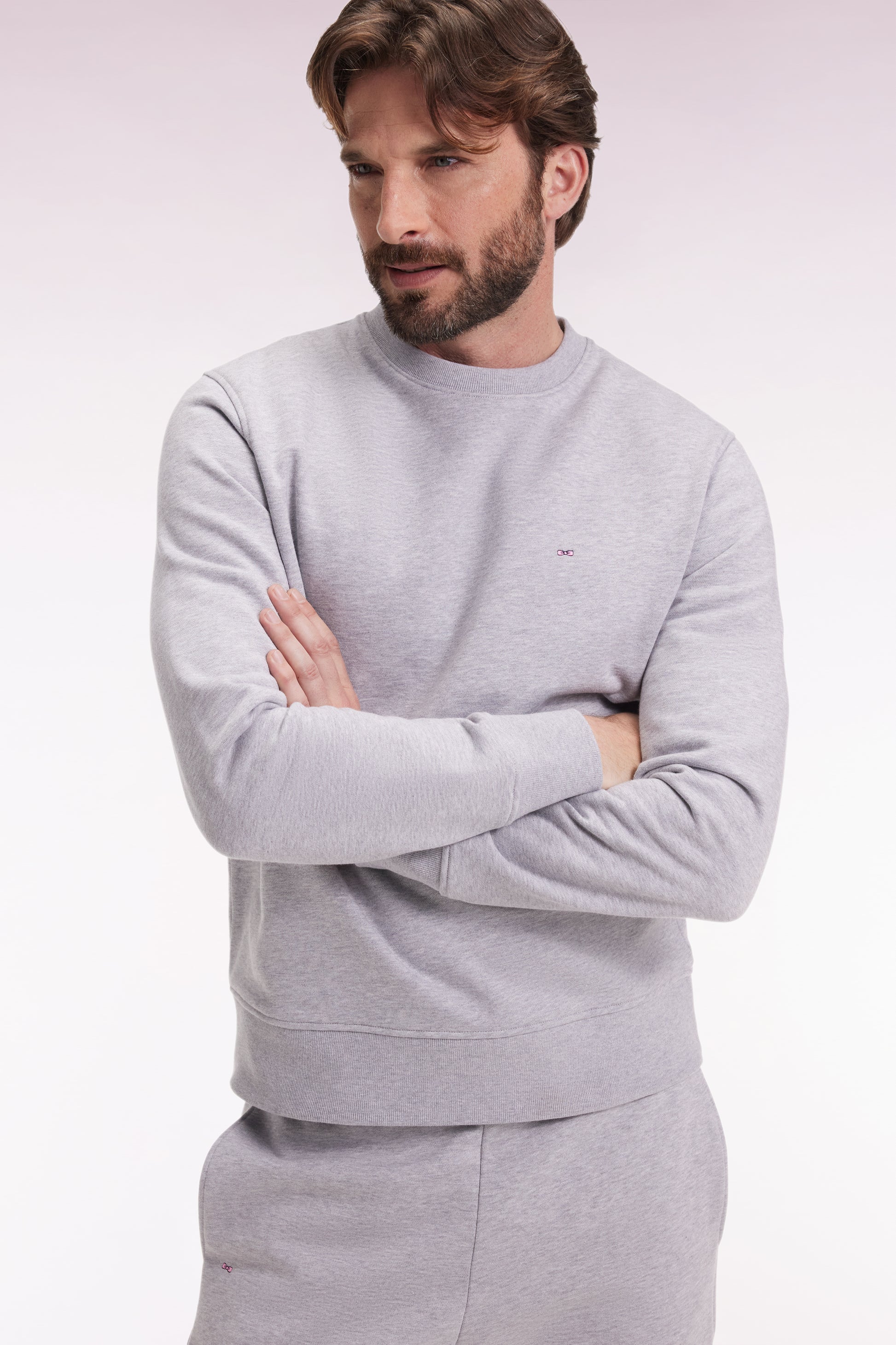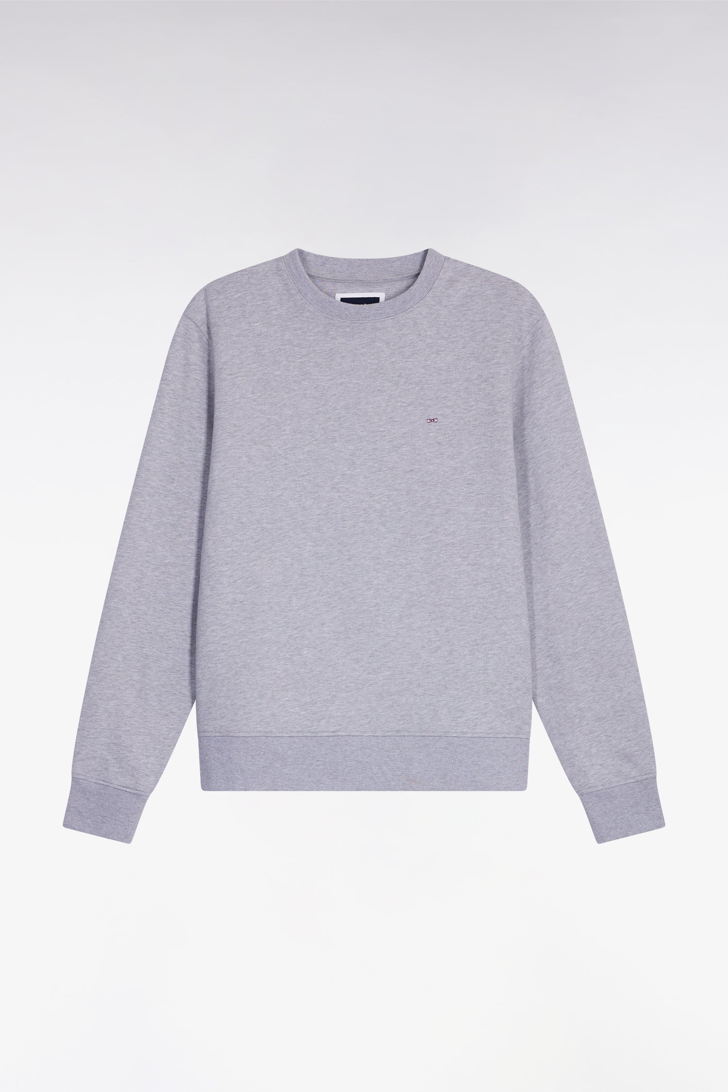 With its straight cut for easy layering and soft, brushed fleece, this men's round-neck sweatshirt is a must-have for the casual wardrobe. Its plain design and refined finishes, such as its emblem embroidery and flat-knit ribbing, assert its simple elegance.