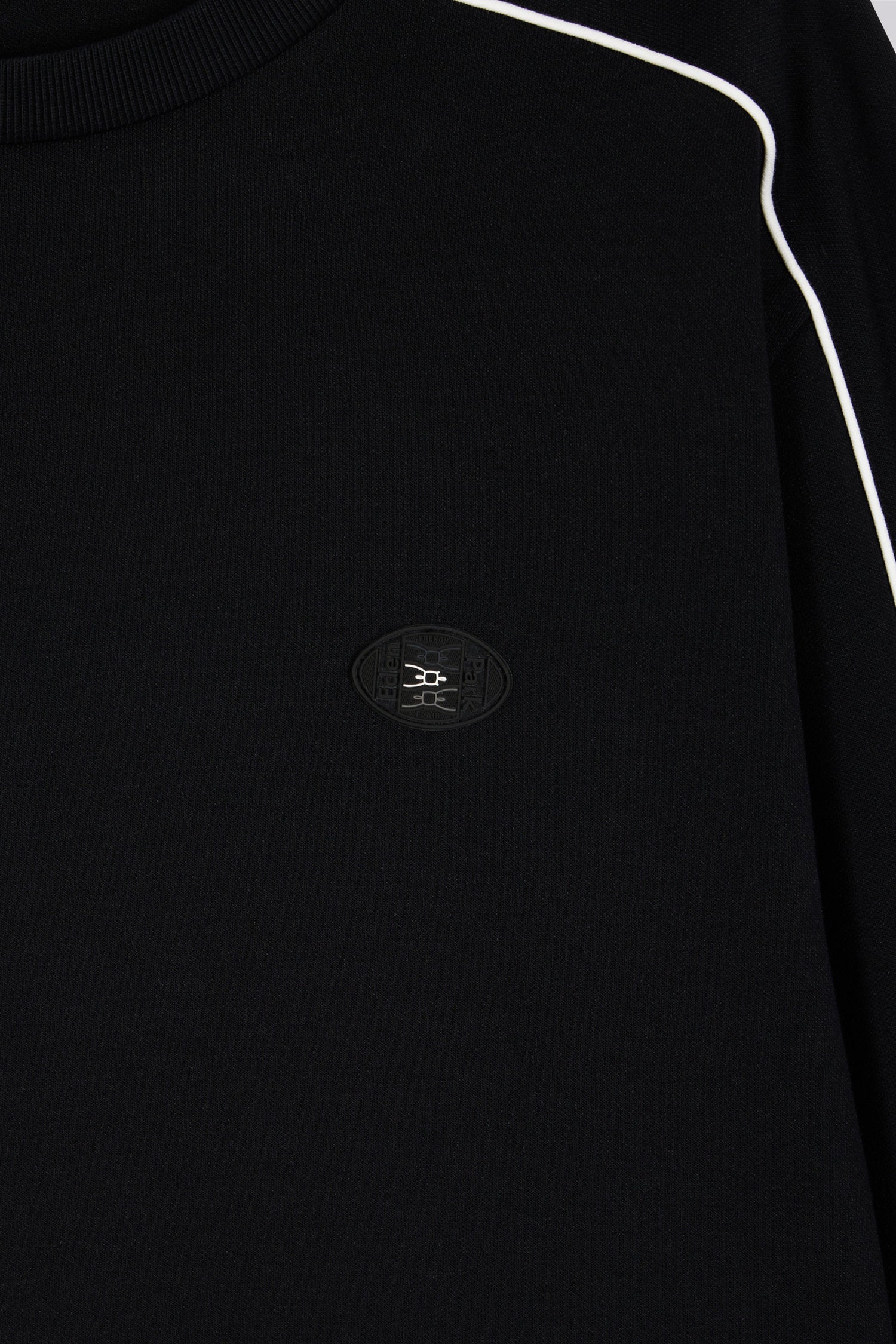 Black fleece sweatshirt with colored piping