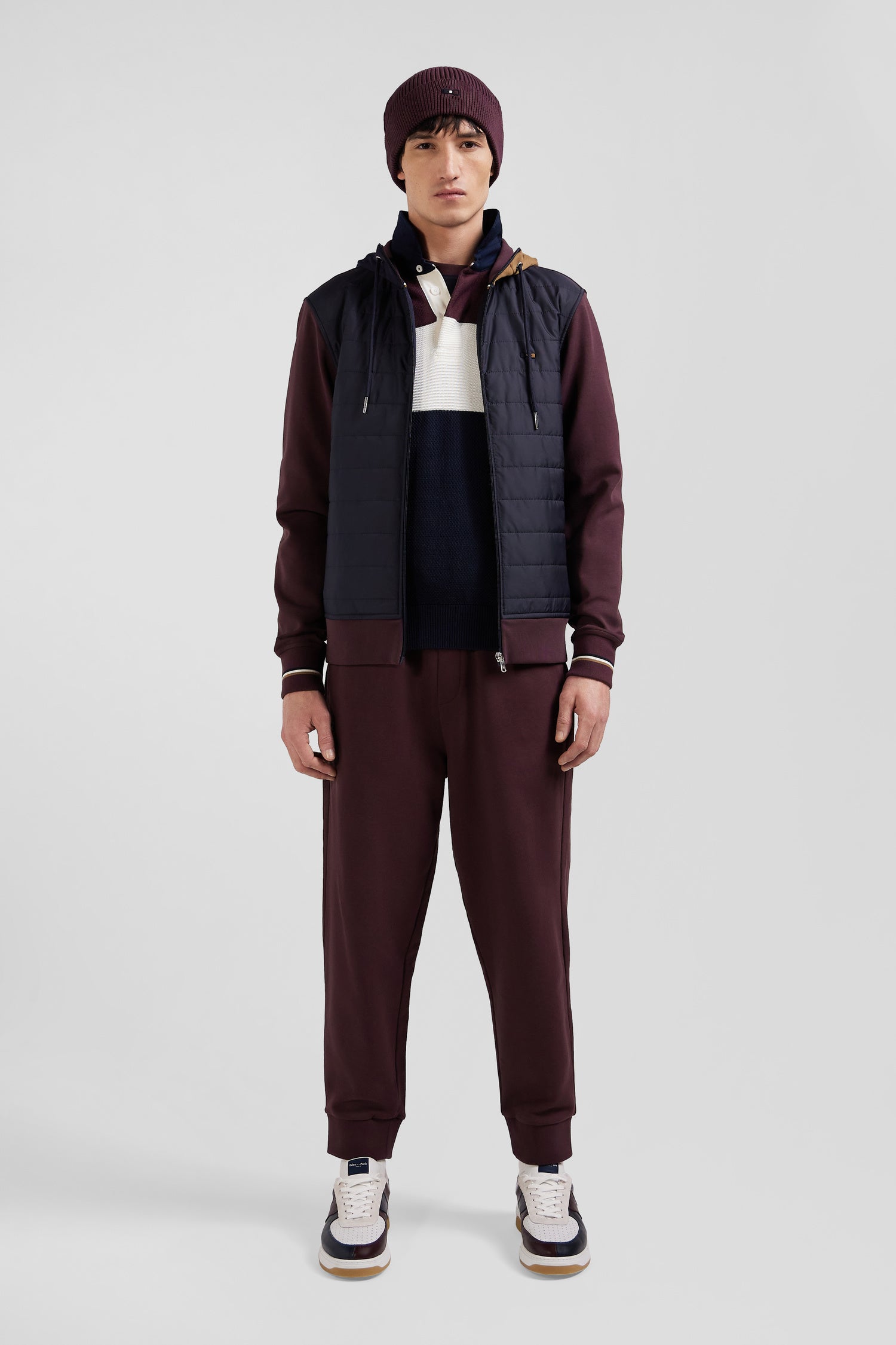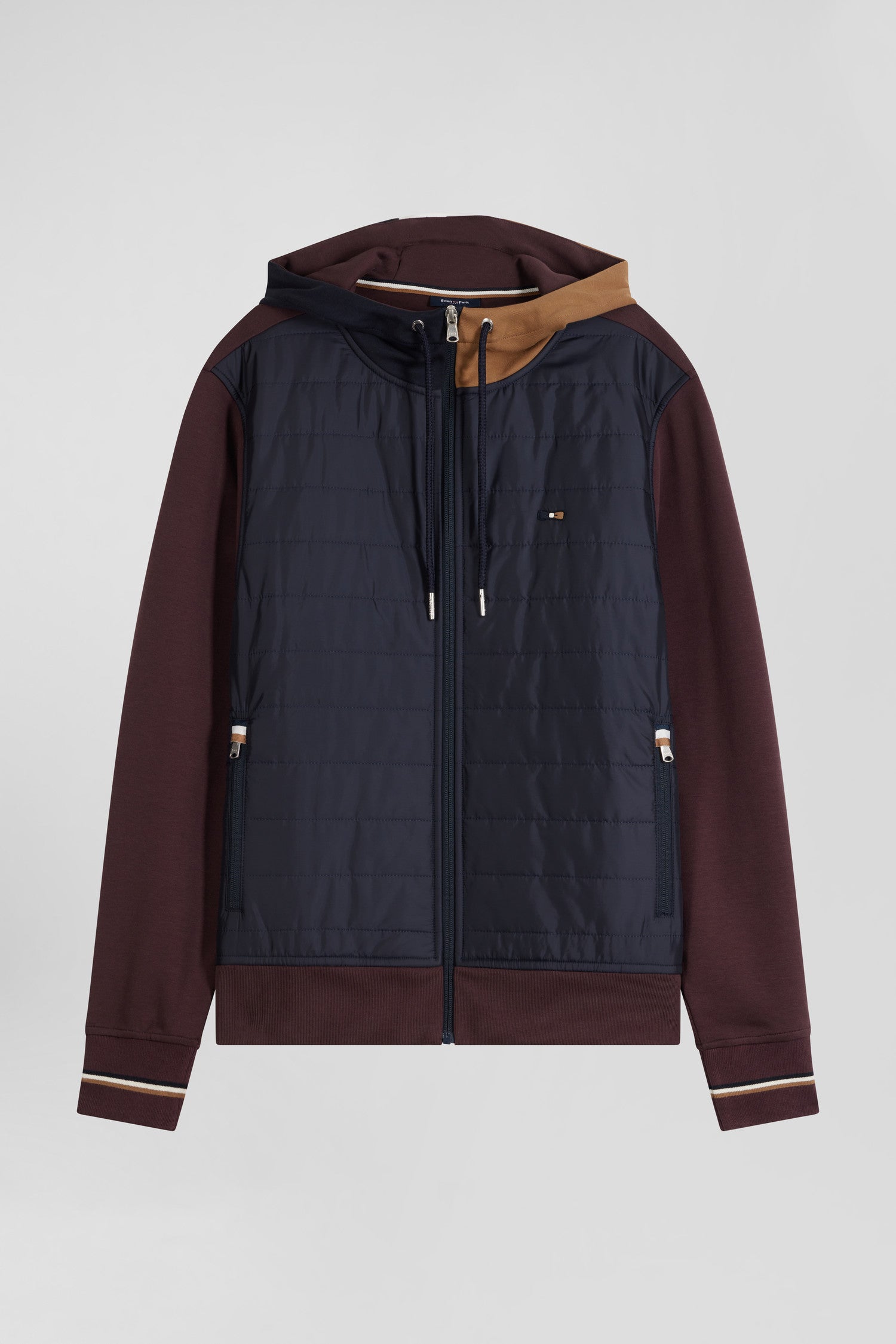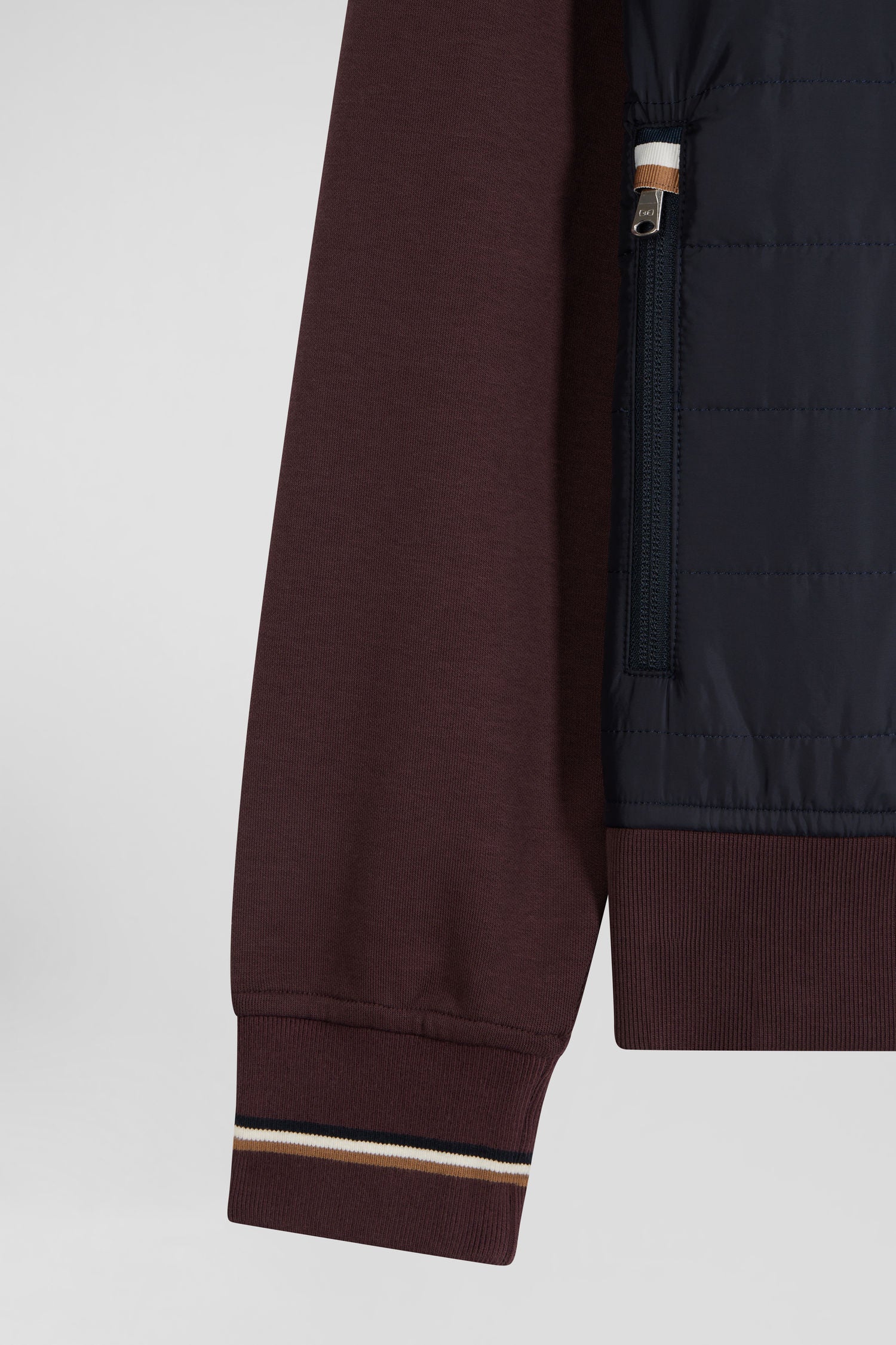 Regular burgundy zipped bi-material sweatshirt with padded front