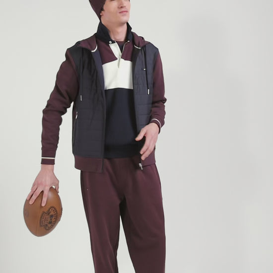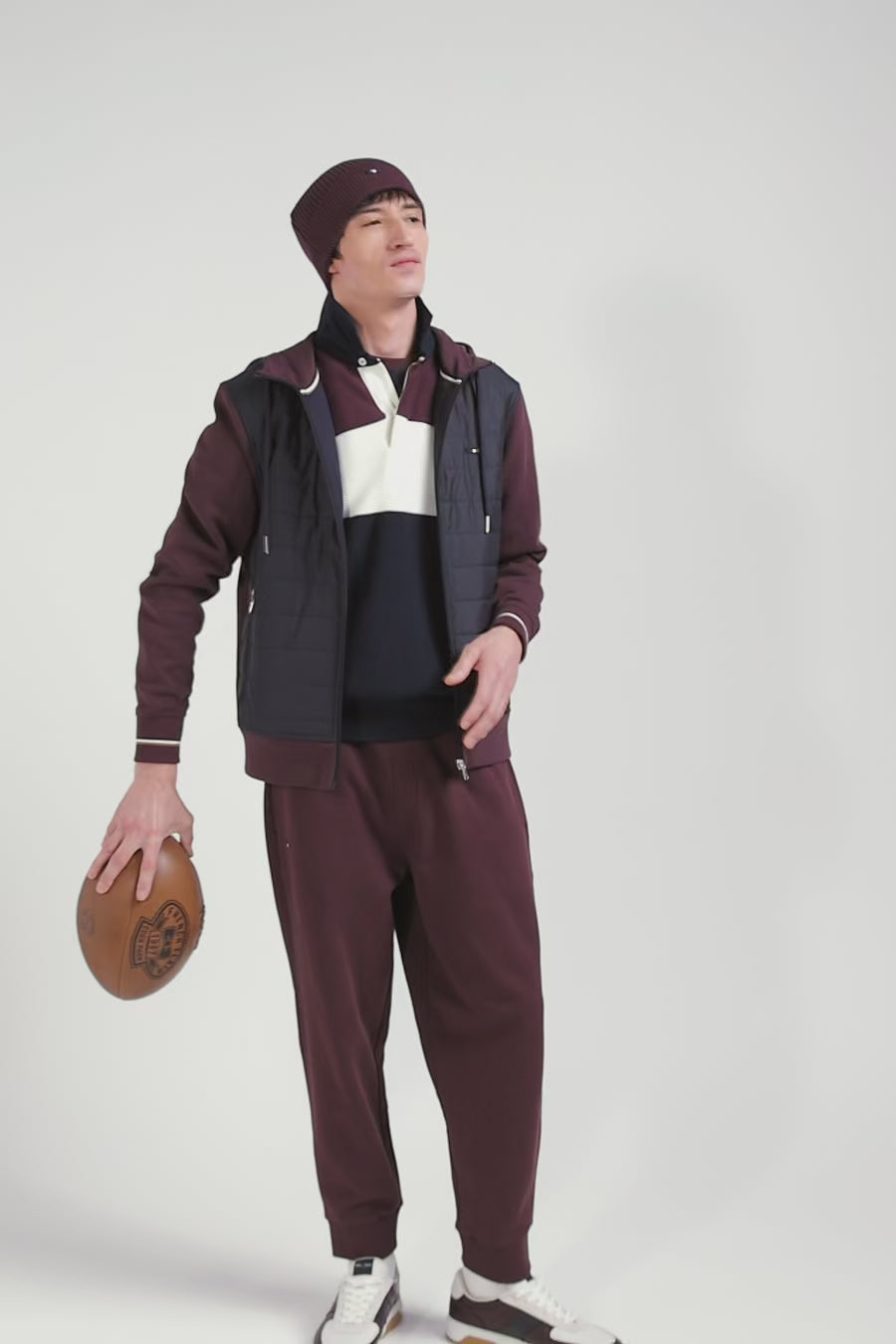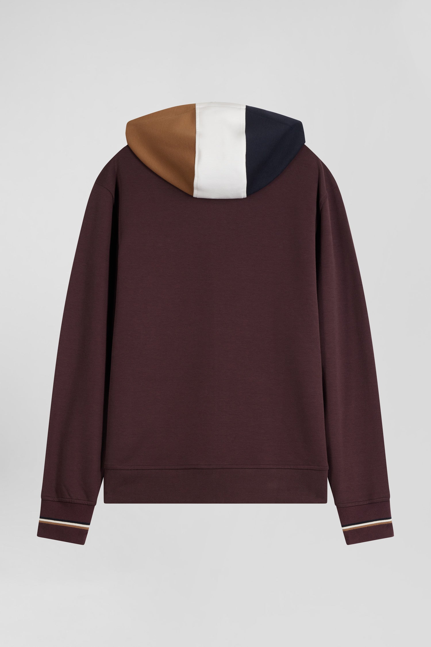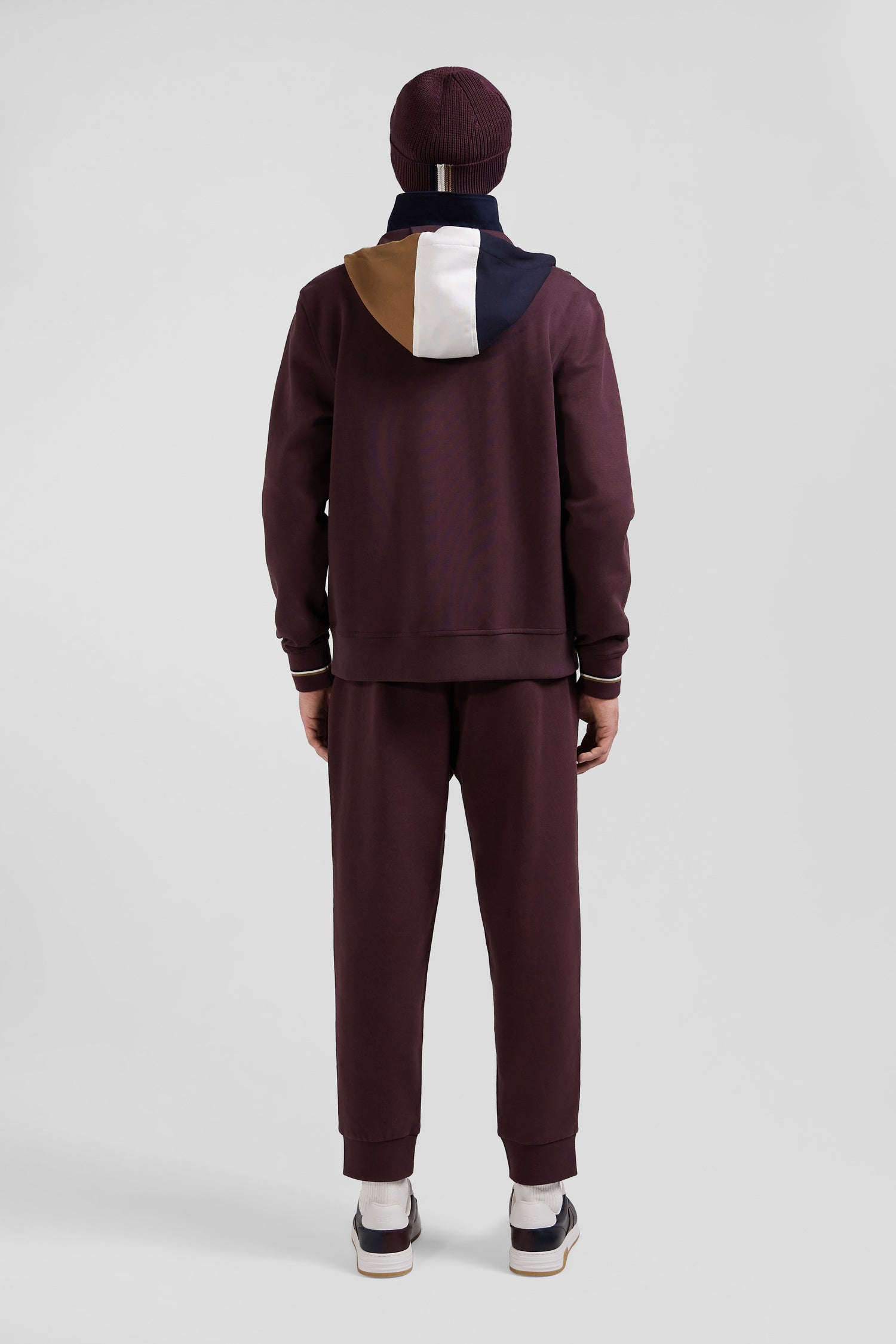 Regular burgundy zipped bi-material sweatshirt with padded front