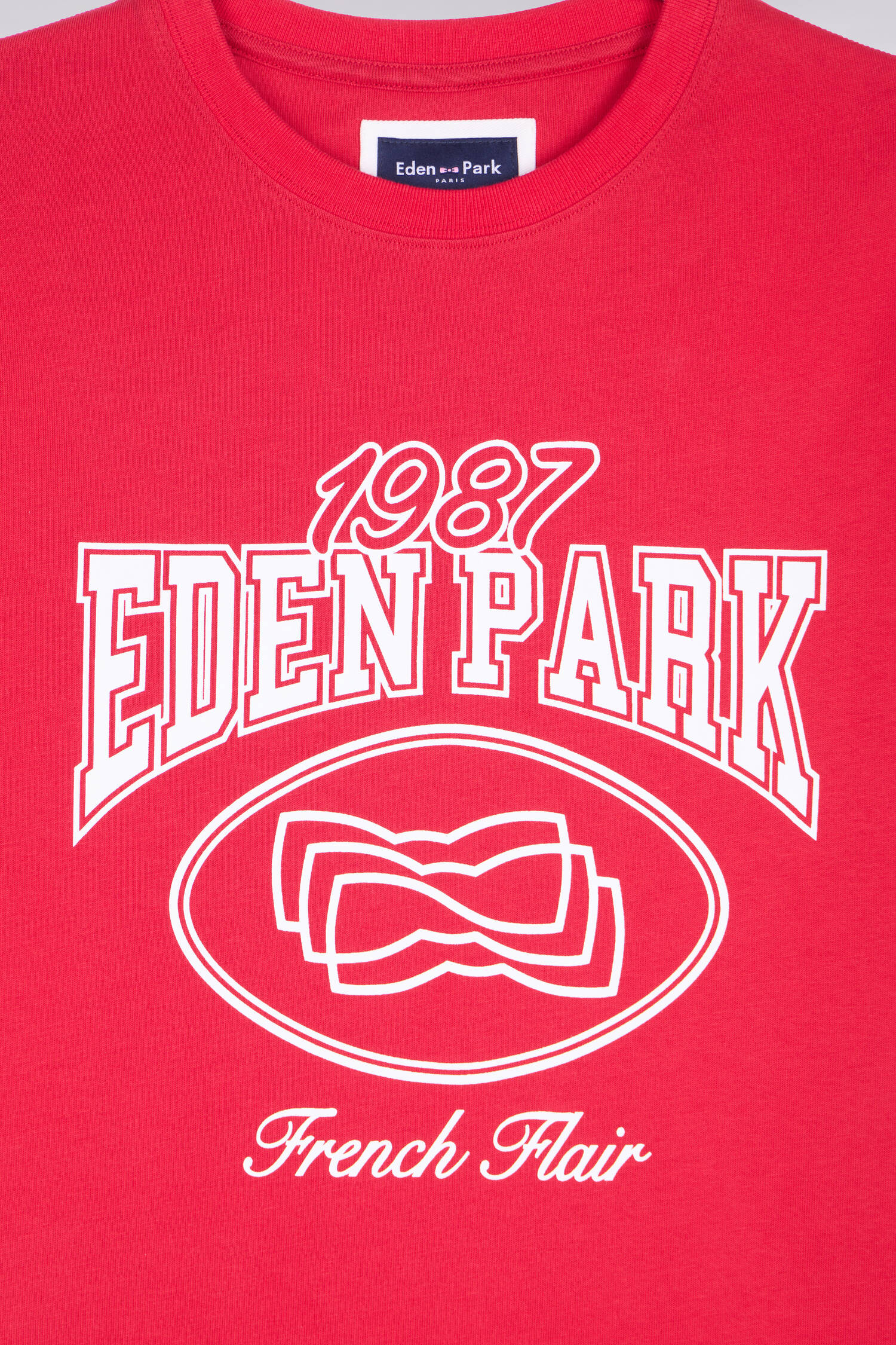 Ce T-shirt manches courtes adopte une coupe droite confortable et se distingue par une sérigraphie Eden Park exclusive. Le graphisme revisite les codes emblématiques de la Maison avec une lecture contemporaine, pensée pour un quotidien urbain comme pour les vacances. Une pièce facile à associer, idéale pour affirmer votre style dans ses coloris écru ou rouge.