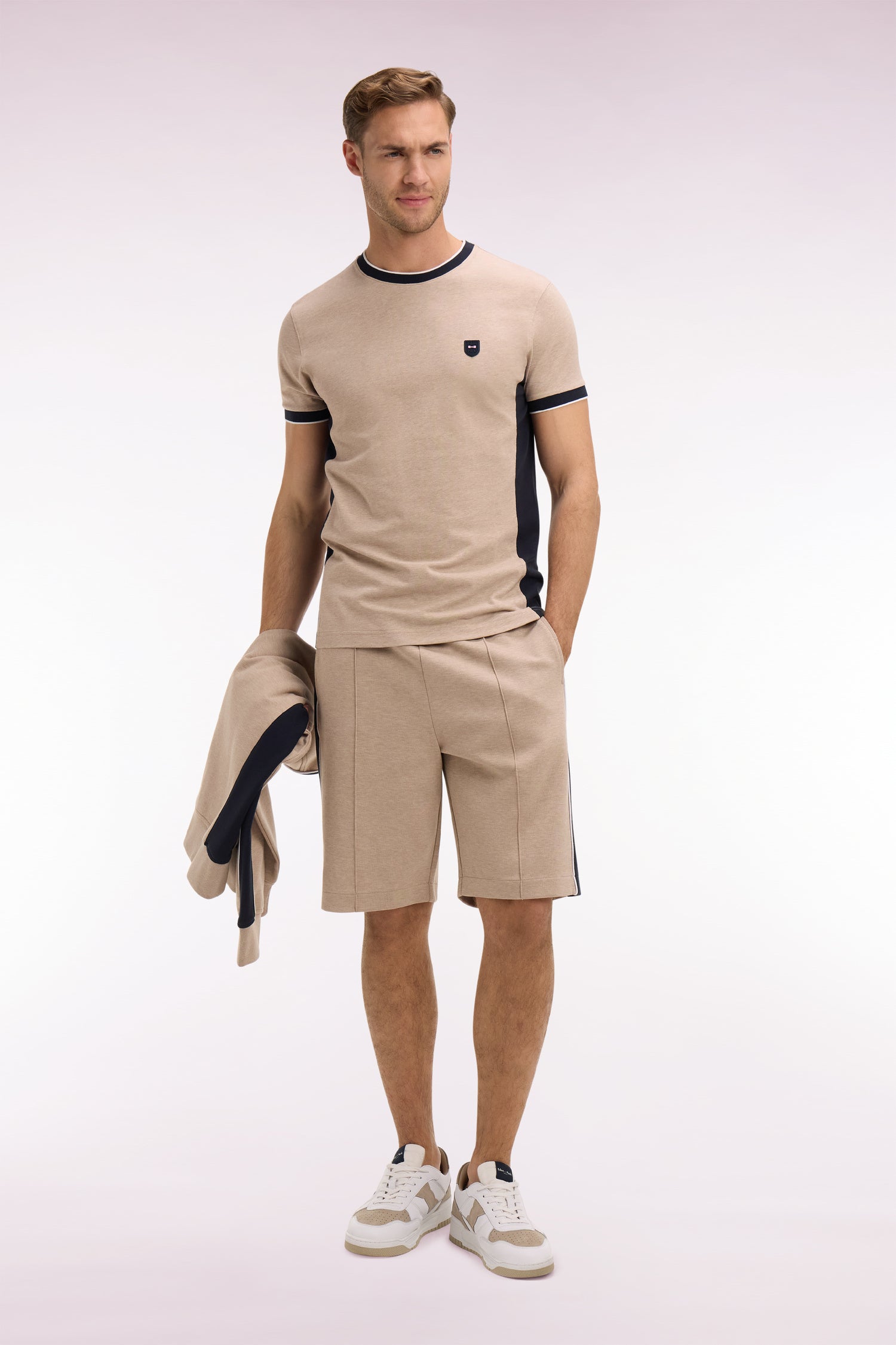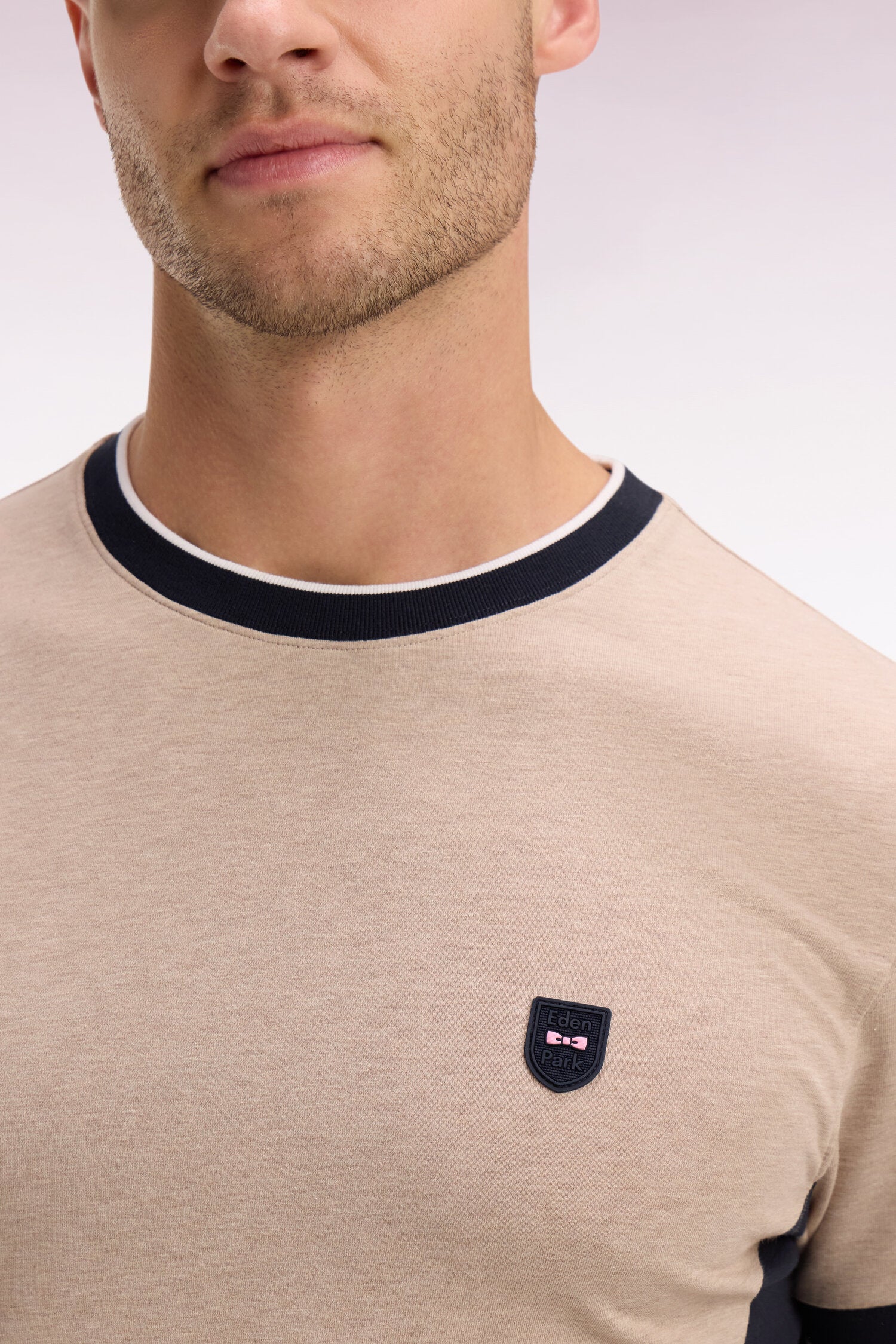Ce T-shirt bicolore à la coupe légèrement ajustée présente un badge poitrine à l'emblème de notre Maison, un détail qui s'ajoute à ses couleurs choisies dans nos codes emblématiques. Inspirées des maillots de rugby, ses découpes contrastées réalisées grâce au savoir-faire coupé-cousue des ateliers Eden Park structurent la silhouette jusque dans vos moments de détente.