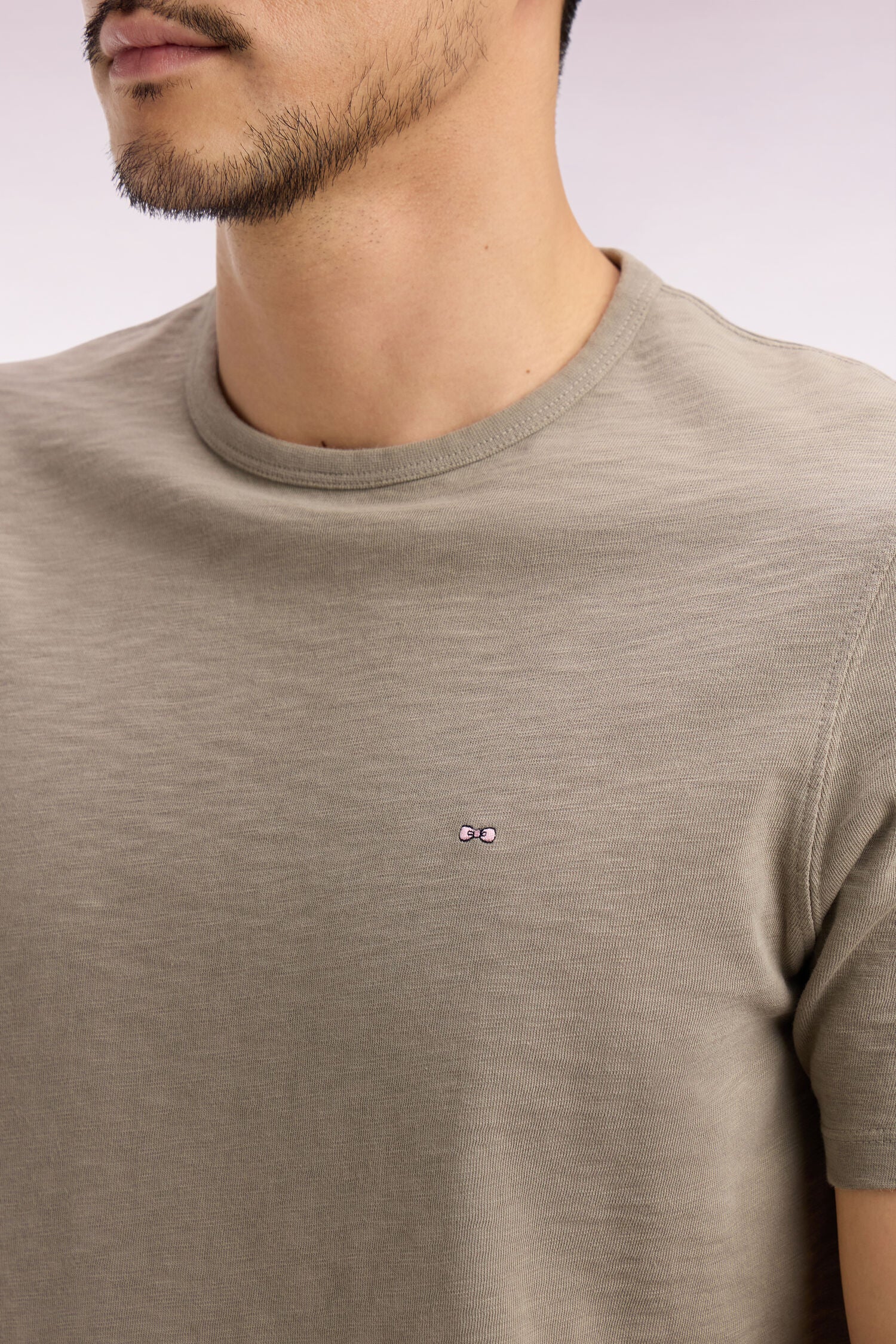T-shirt à manches courtes en jersey de coton slub kaki coupe regular