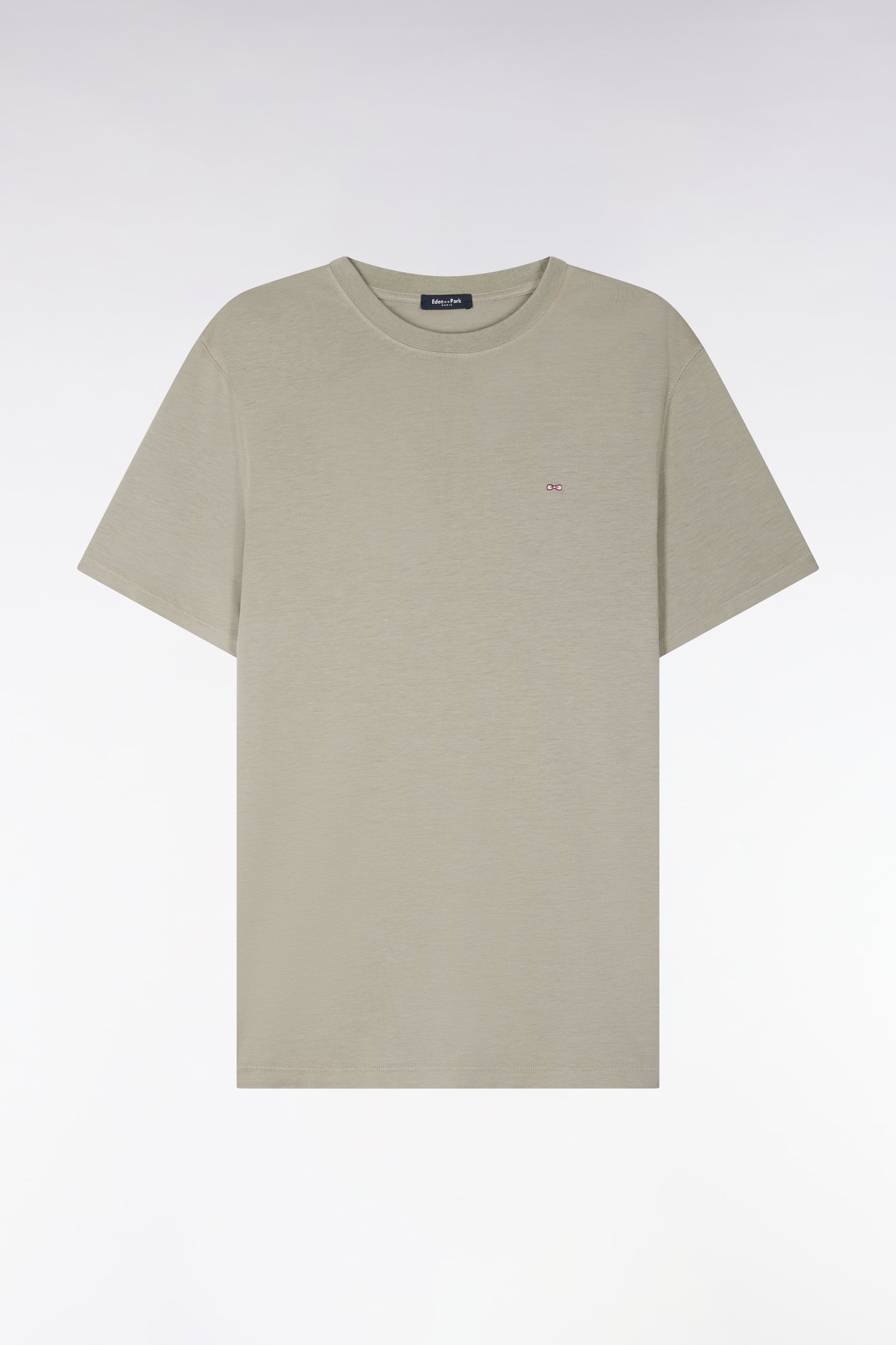 T-shirt à manches courtes en lyocell et coton kaki clair coupe regular