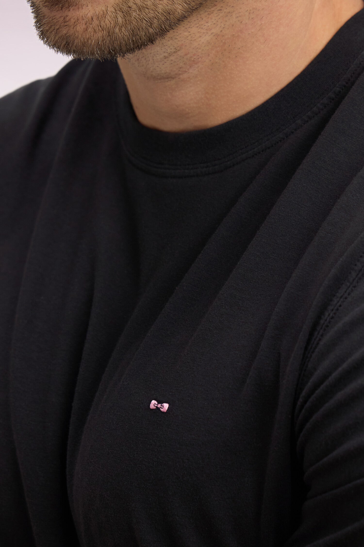 Short-sleeved black lyocell and cotton T-shirt, regular fit