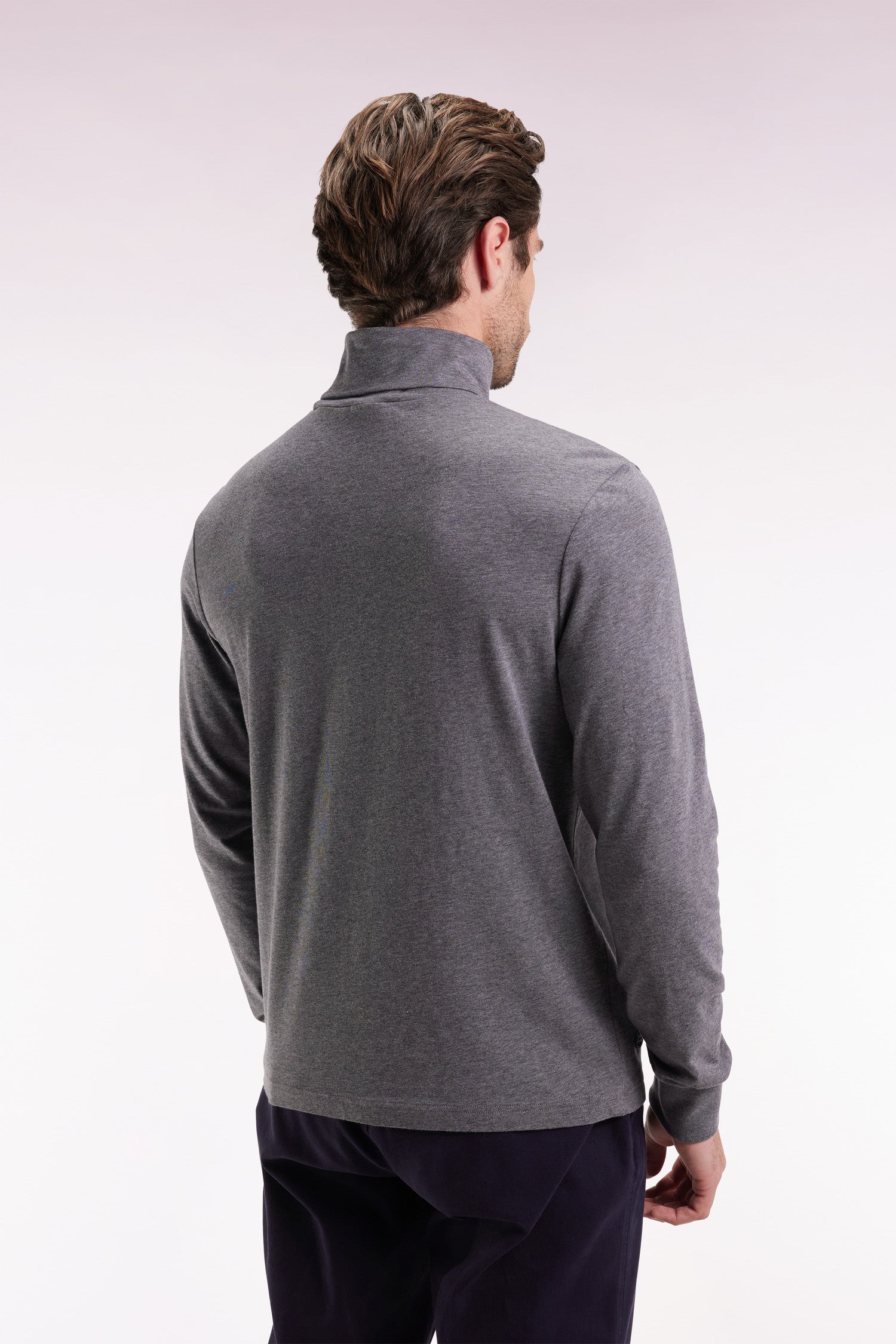 Long-sleeved turtleneck T-shirt in grey stretch cotton