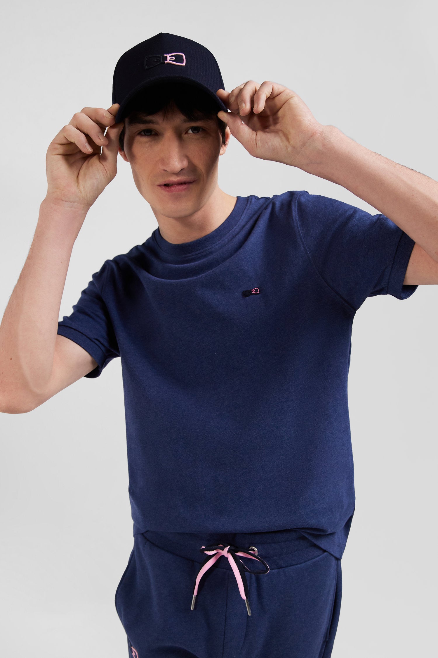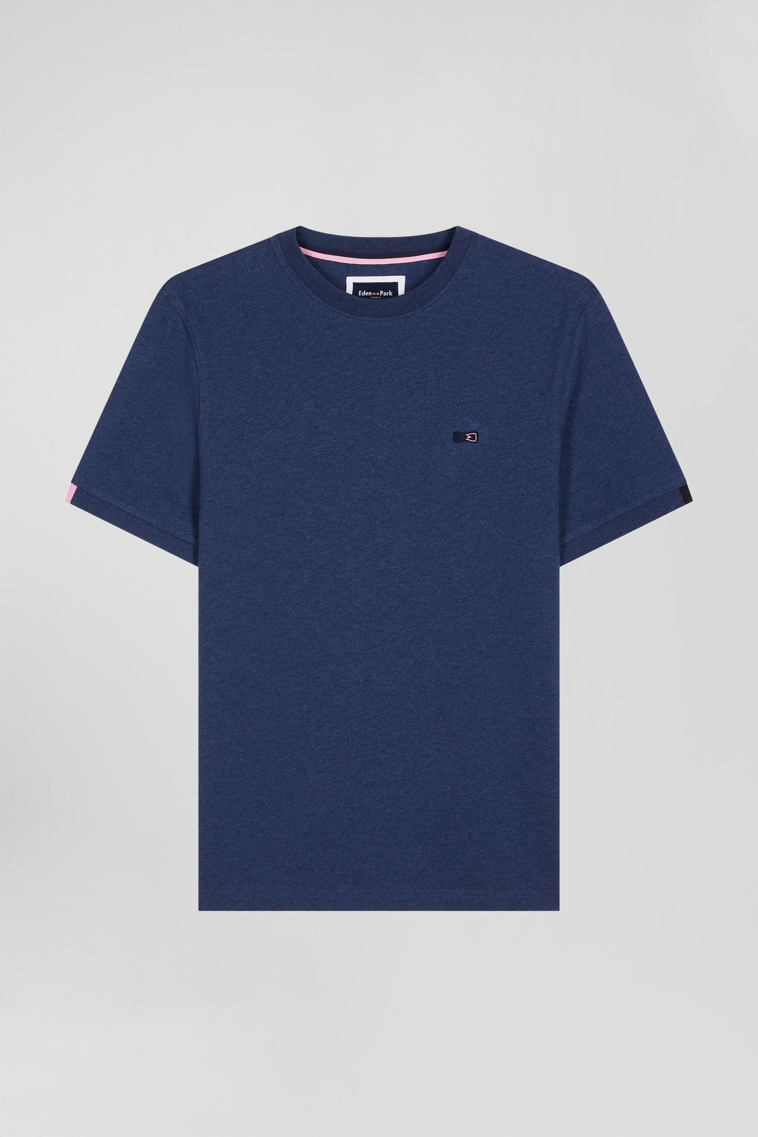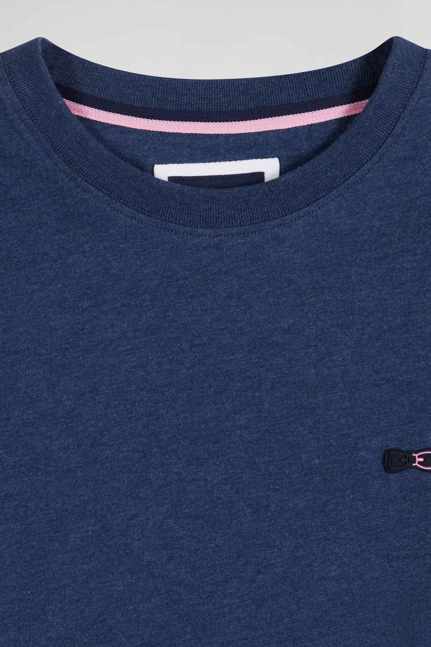 Regular blue short-sleeved cotton T-shirt with emblem embroidery
