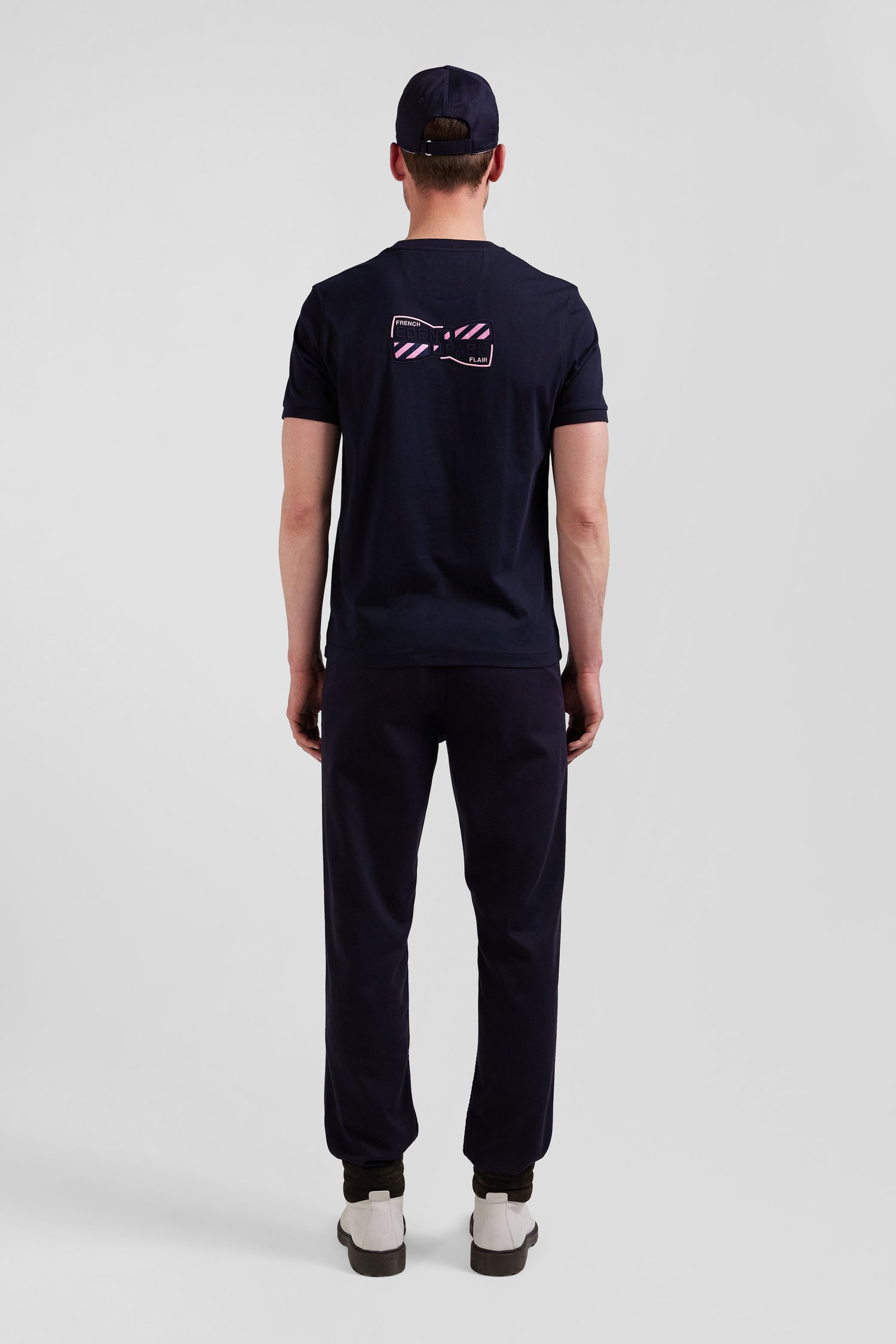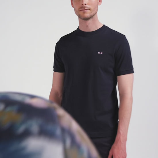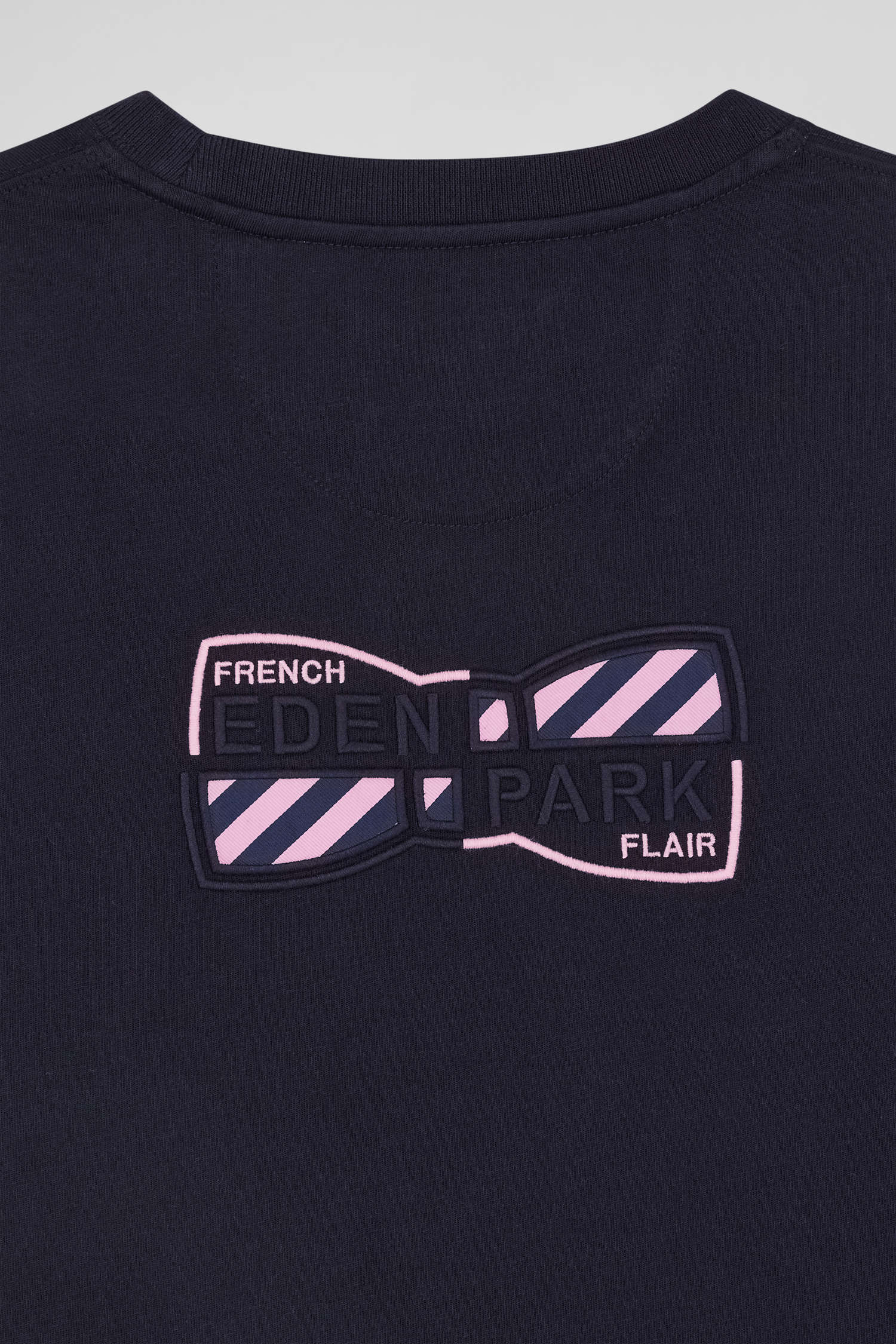 On the front, this men's T-shirt features our discreet bow tie emblem embroidery, while on the back this now iconic motif is reworked in a large embroidery with tie fabric application. Comfortable and sophisticated, this T-shirt adds character to a casual outfit.