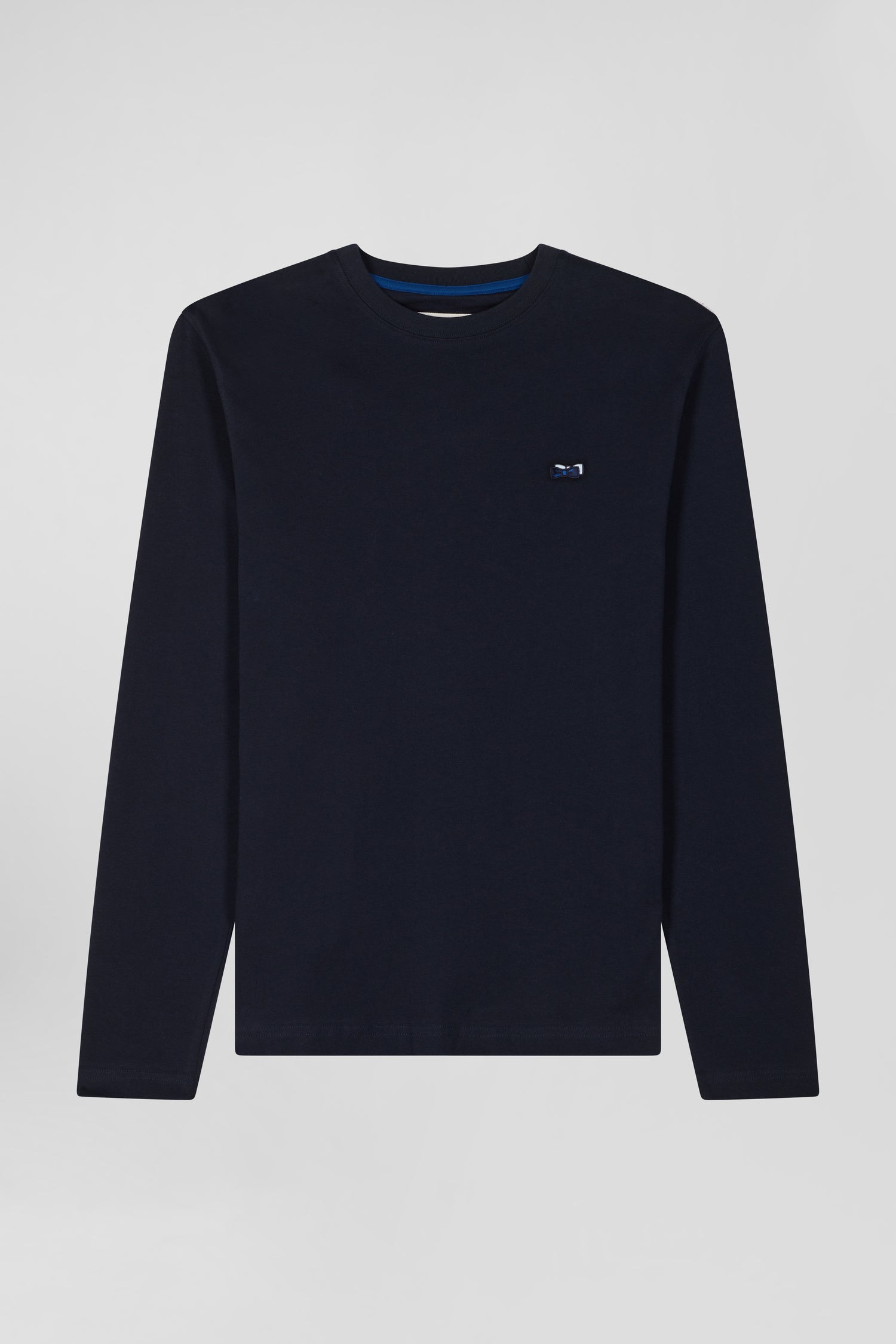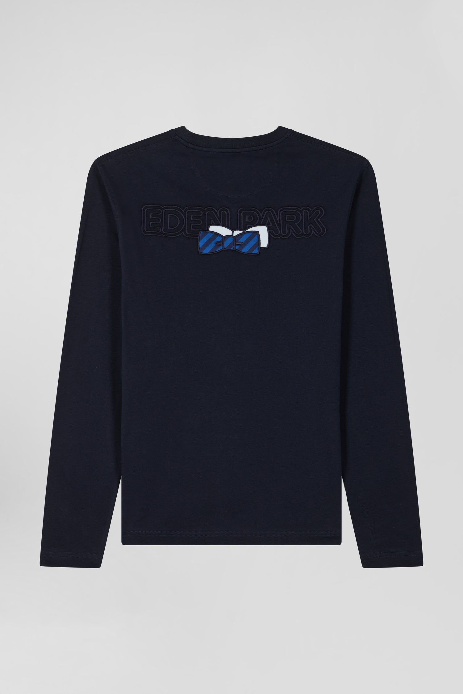 Regular navy long-sleeved cotton T-shirt with striped bow tie embroidery
