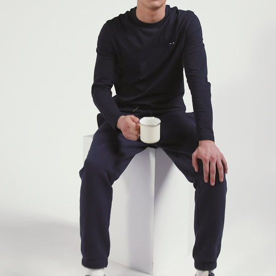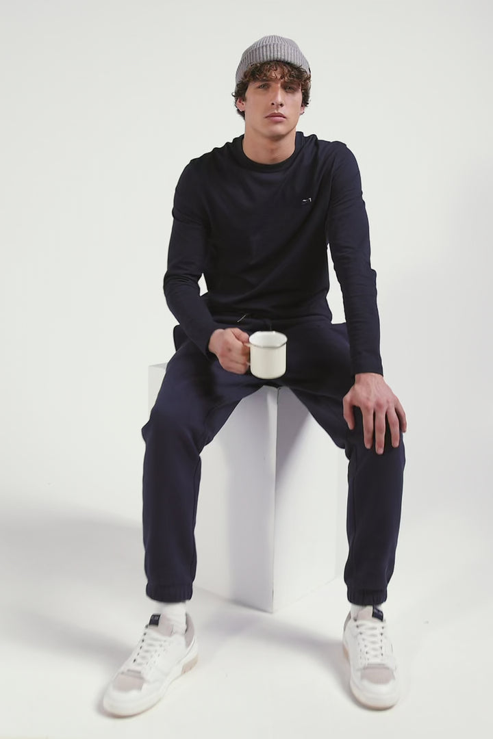 Regular navy blue brushed fleece jogging bottoms